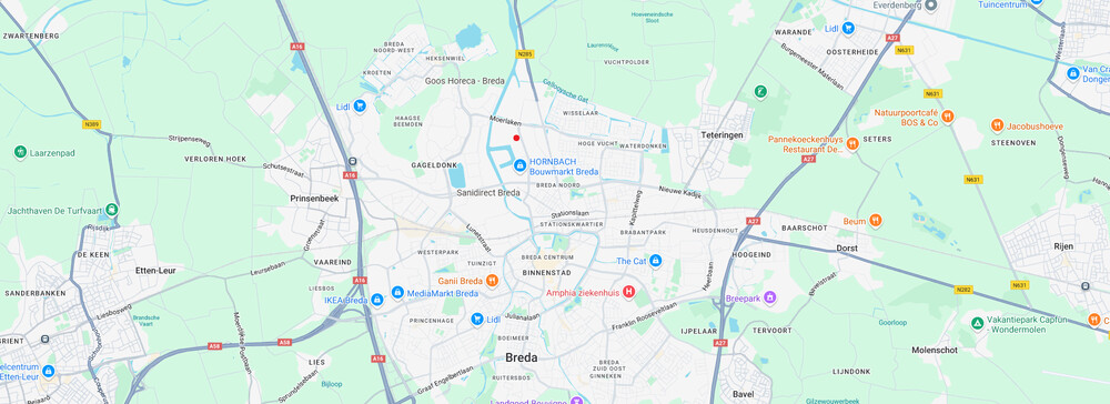 De kavel is gunstig gelegen nabij de noordelijke rondweg van Breda, die directe verbinding biedt met de snelwegen A58, A59 en A27. Hierdoor is de locatie makkelijk te bereiken vanuit diverse richtingen, zoals Rotterdam, Tilburg en Antwerpen. Daarnaast bevindt de kavel zich op korte afstand van logistieke hotspots en belangrijke economische knooppunten. In de nabije omgeving zijn diverse toonaangevende bedrijven gevestigd, zoals Jongeneel Breda, Makro, Mammoet, productiebedrijven en internationale spelers binnen de logistieke sector. Dit maakt de kavel bijzonder geschikt voor logistieke bedrijven, productiebedrijven en andere ondernemingen die een centrale ligging vereisen.Bestemming