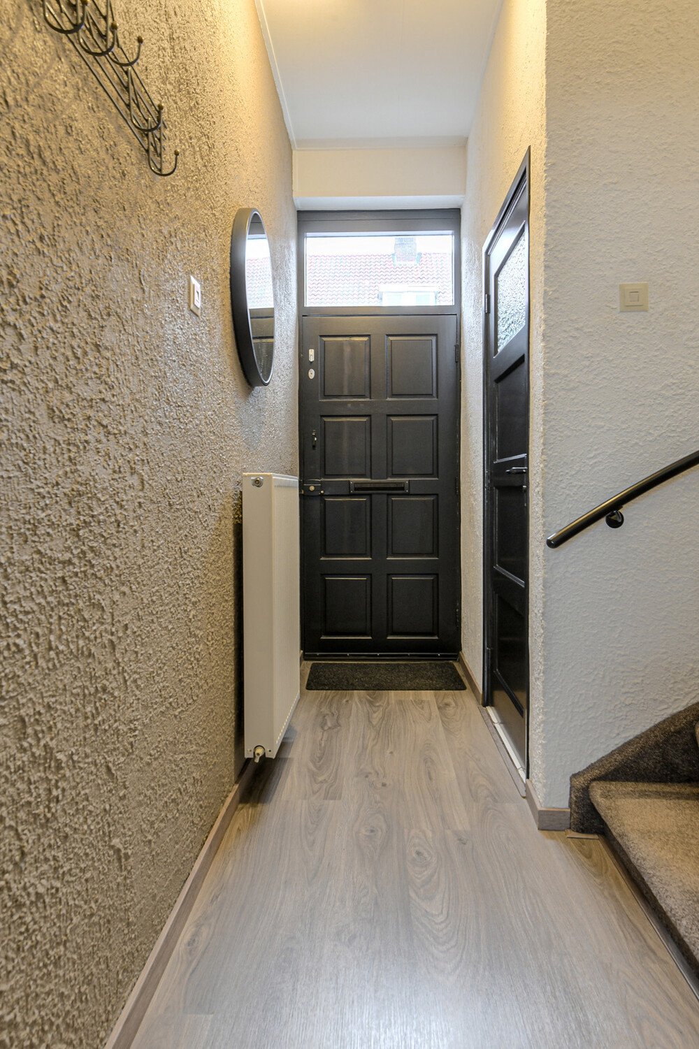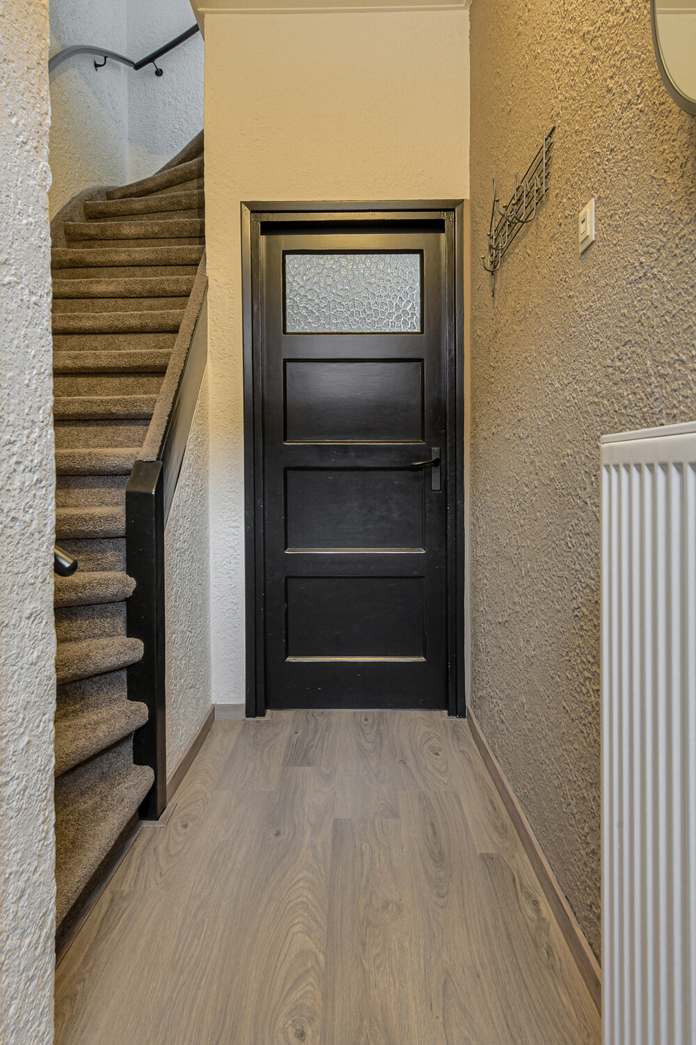 Entree in gang met toilet en trapopgang naar de eerste verdieping.Woonkamer