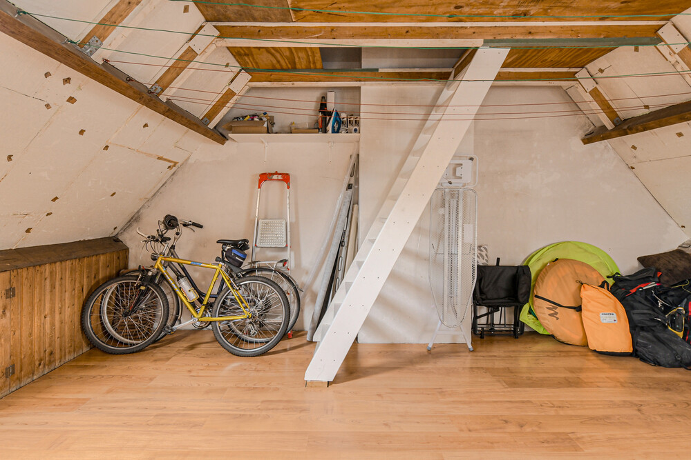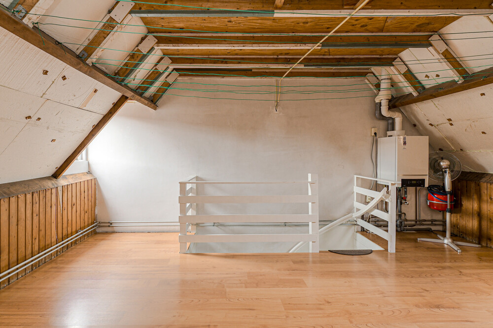 Via een vaste trap te bereiken grote zolder met knieschotberging en mogelijkheid voor het realiseren van één- of twee (werk-/slaap) kamers. Hier bevindt zich de cv-ketel en voorts is via een vaste trap een bevloerde vliering bereikbaar.