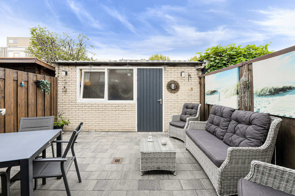 De achtertuin is ca 6.00 m diep en ca. 4.80 m breed en is gesitueerd op het noord-noordwesten. Deze tuin is aangelegd met bestrating. In de tuin bevindt zich een berging (ca. 1.90 x 4.55 m) met een achterom. De berging is voorzien van elektra.