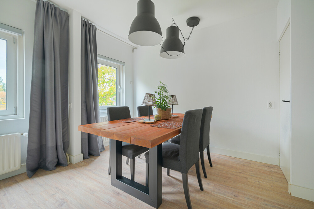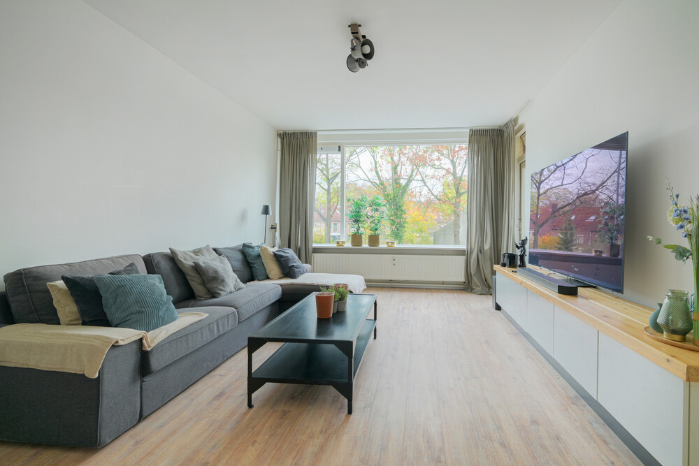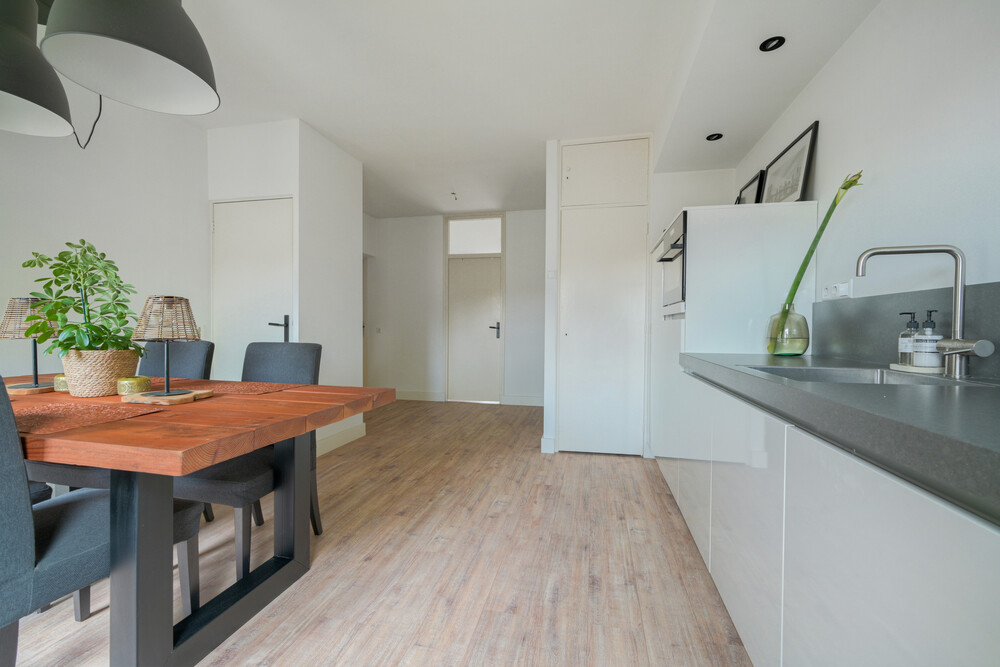 De ruime leefkeuken is volledig ingericht en voorzien van een inductiekookplaat, afzuigkap, spoelbak, vaatwasser, combimagnetron, koelkast en vier lades vriezer. Daarnaast zijn er twee vaste kasten met aansluitingen voor wasmachine en boiler, waardoor de keuken zowel functioneel als praktisch is.Woonkamer
