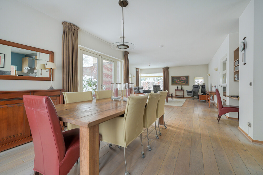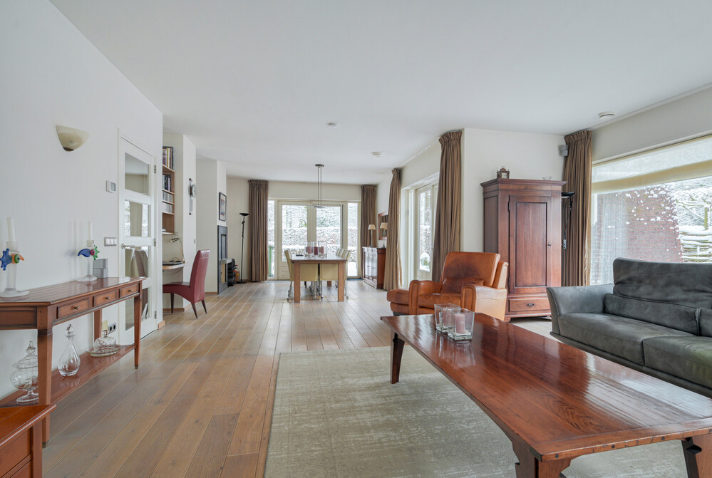 De villa straalt kwaliteit en comfort uit en biedt een doordachte indeling met volop leefruimte. De zeer ruime woonkamer vormt het hart van de woning en staat in verbinding met de groene omgeving. In totaal beschikt de woning over vier slaapkamers en twee badkamers, waarvan zich twee slaapkamers en een badkamer op de begane grond bevinden – ideaal voor gelijkvloers wonen. Daarnaast is er een grote garage/berging en een oprit alsmede parkeergelegenheid voor meerdere auto's op eigen terrein.