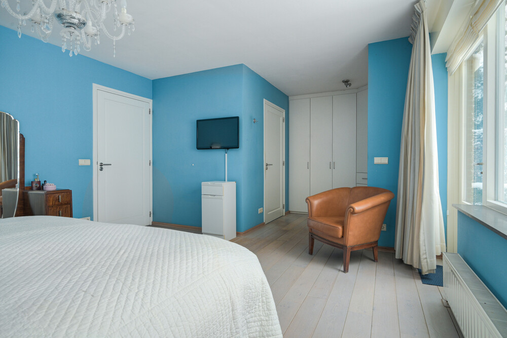 Vanuit de hal via een gang toegang tot bijkeuken, slaapkamer met badkamer, werkkamer en garage.Slaapkamer i