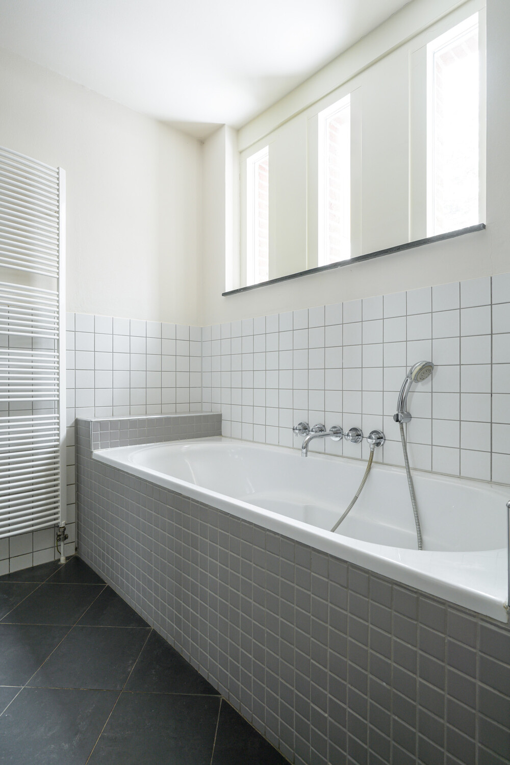 Ruime berging (ca. 1.35 x 1.90 m) waarin zich de CV-ketel en WTW-unit bevinden.Badkamer