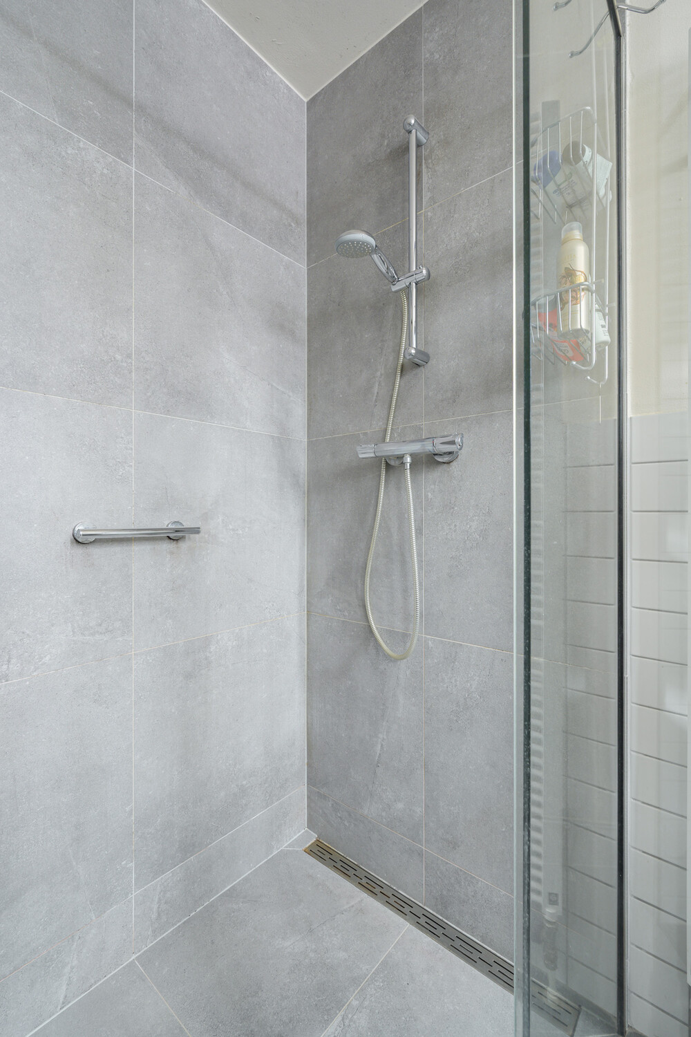Tweede badkamer (ca. 2.45 x 2.45 m) met douche voorzien van thermostaatkraan, wastafel en een wandcloset met inbouwreservoir.Slaapkamer iii