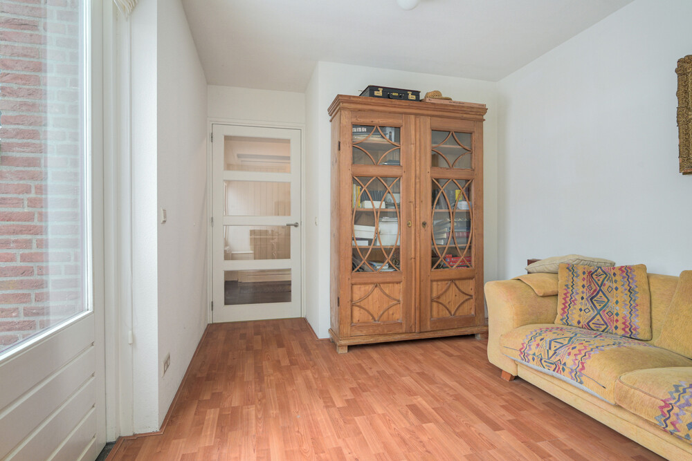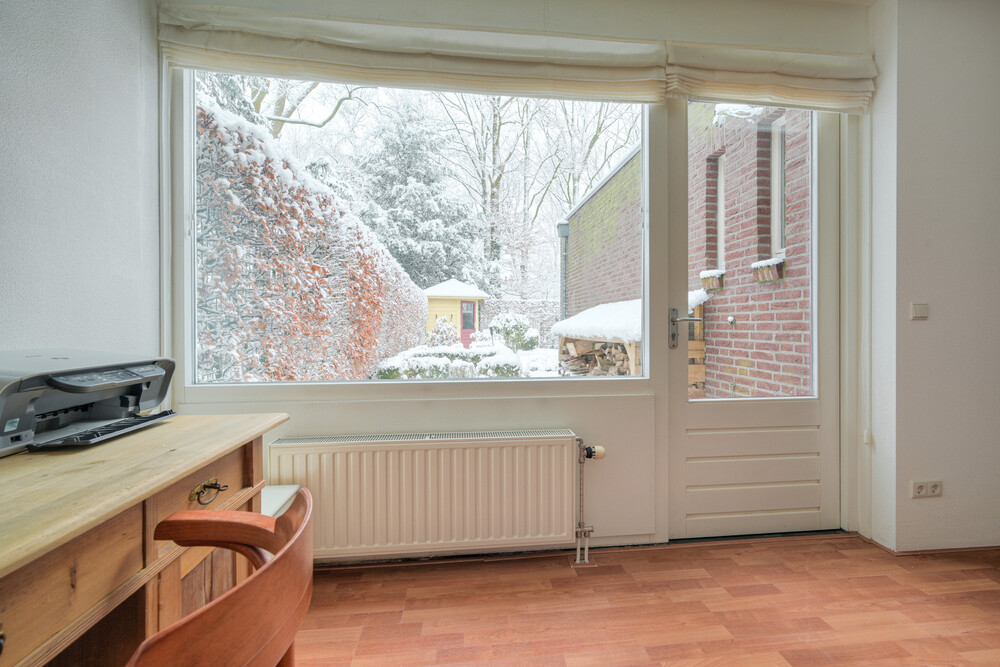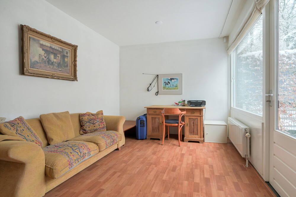 De werkkamer (ca. 3.05 x 4.25 m) is gelegen aan de achterzijde en is voorzien van een laminaatvloer en een stapdeur naar de tuin.