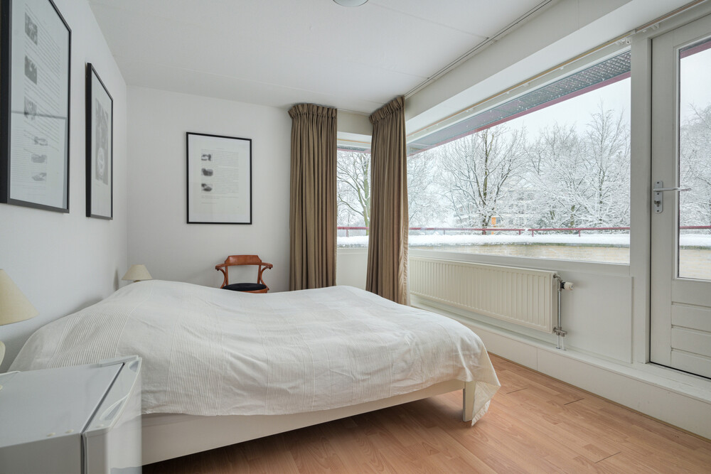Slaapkamer (ca. 2.95 x 4.50 m) gelegen aan de voorzijde met laminaatvloer en toegang tot dakterras.Dakterras