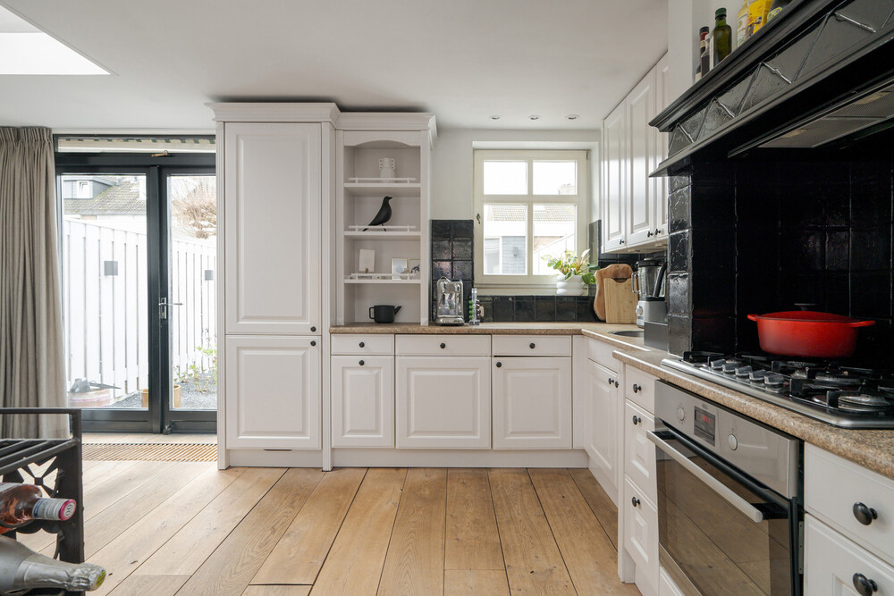 De woning is aan de achterzijde uitgebouwd, waardoor een verrassend ruime en lichte woonkeuken is ontstaan – dé plek om samen te komen, te koken en te genieten.