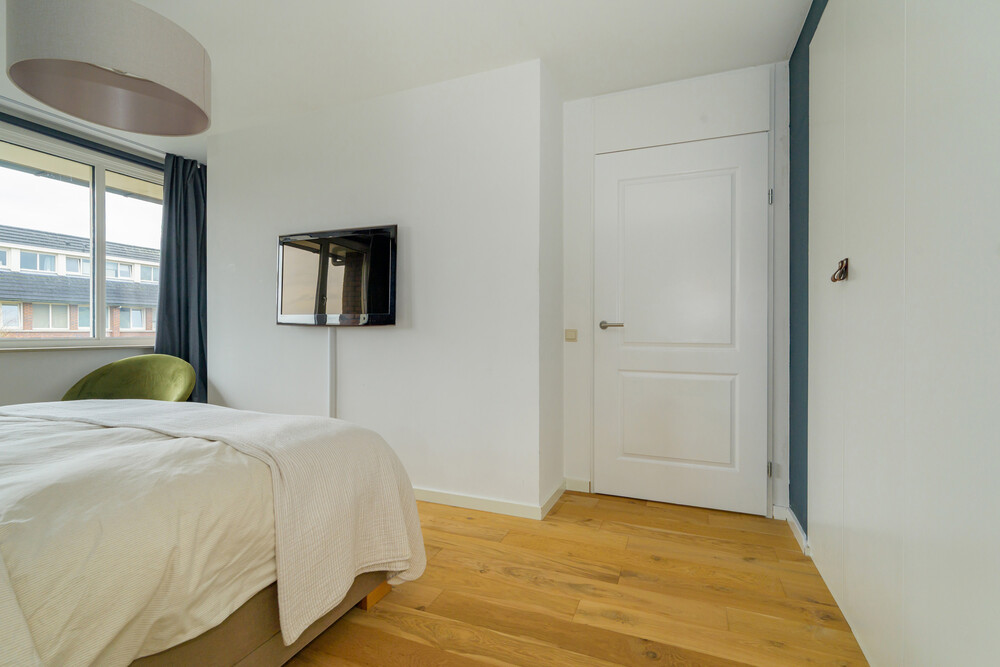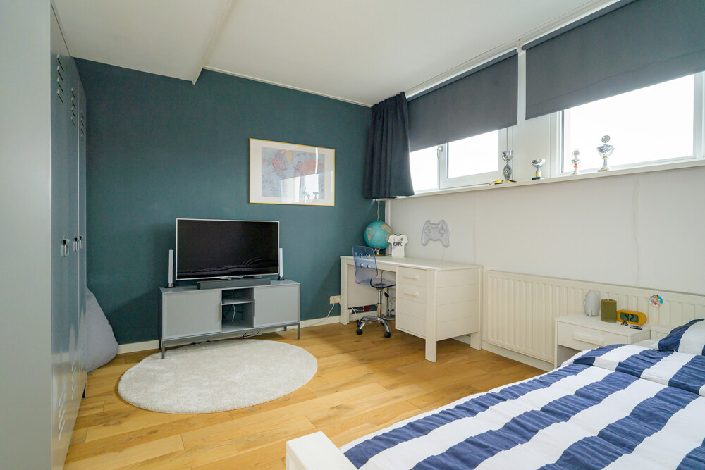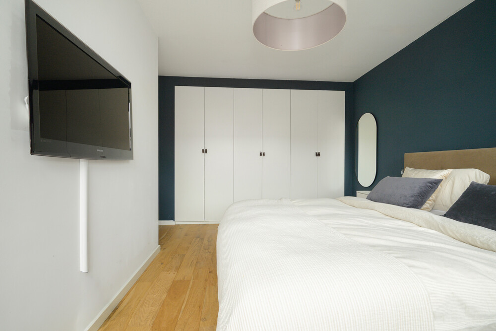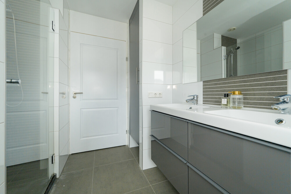 Zeer ruime hoofdslaapkamer, aan de achterzijde gelegen. In deze kamer is een ruime, op maat gemaakte kledingkast geplaatst.Badkamer