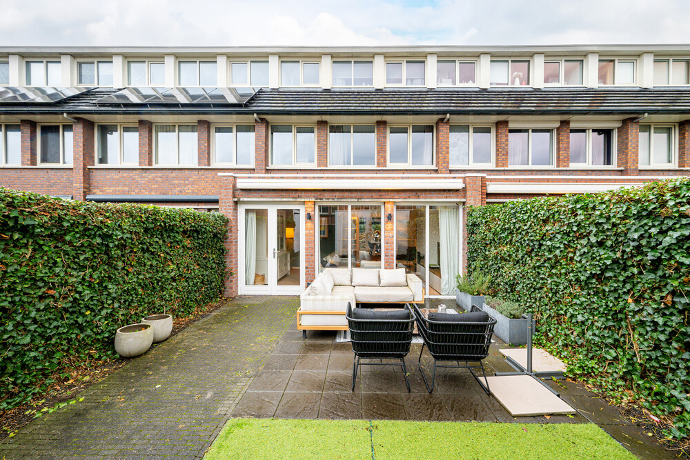 Boven het terras is een elektrisch zonnescherm (over de gehele breedte van de woning) geplaatst.