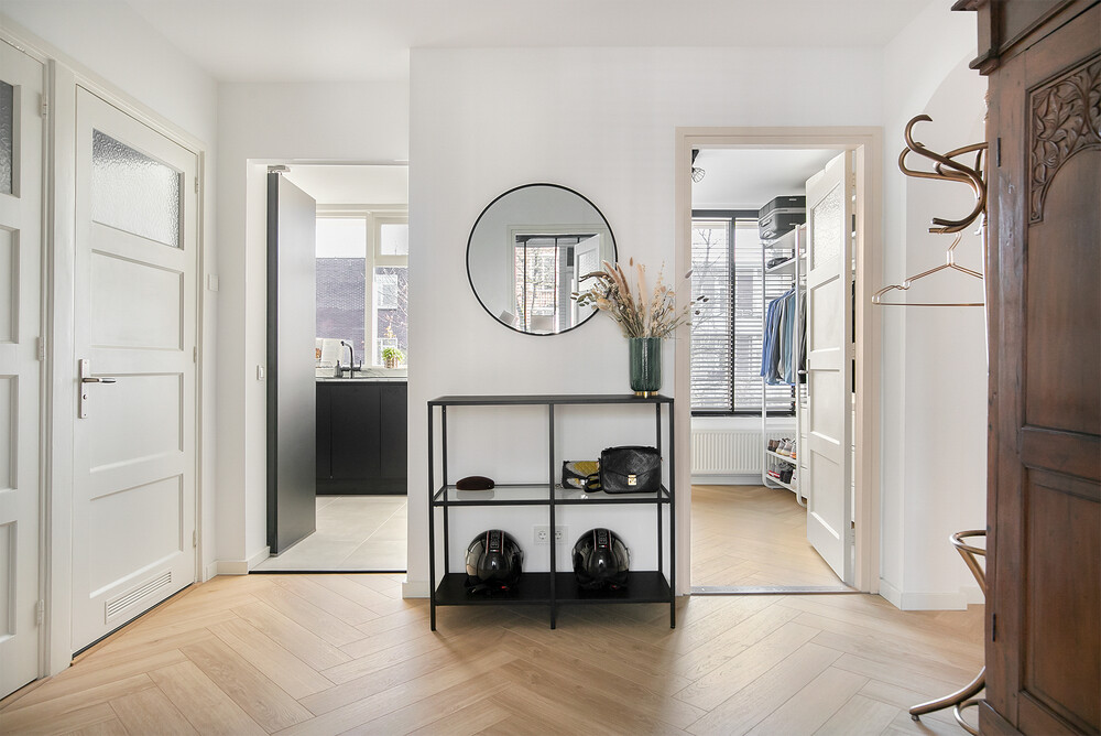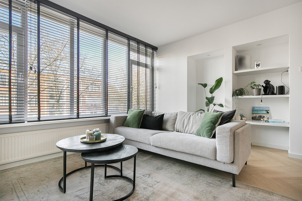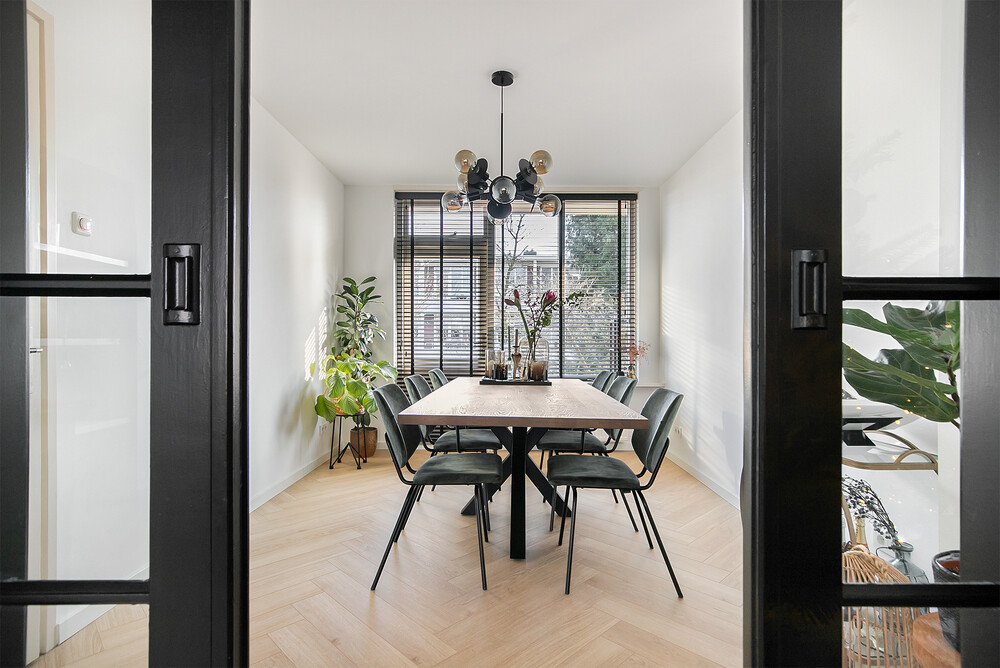 Licht, ruimte en sfeerDe woonkamer en-suite is een echte blikvanger. De karakteristieke schuifdeuren zorgen voor een speelse indeling tussen wonen en eten, terwijl de grote ramen zorgen voor veel natuurlijk licht. De woonkamer aan de voorzijde voelt warm en gezellig aan, mede dankzij de schouw en vaste kastruimte. Aan de achterzijde bevindt zich de eetkamer met directe toegang tot het balkon – perfect voor een kop koffie in de ochtendzon of een borrel na werk.