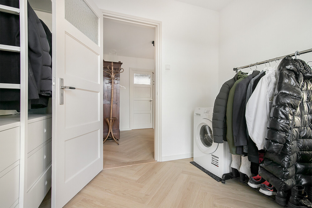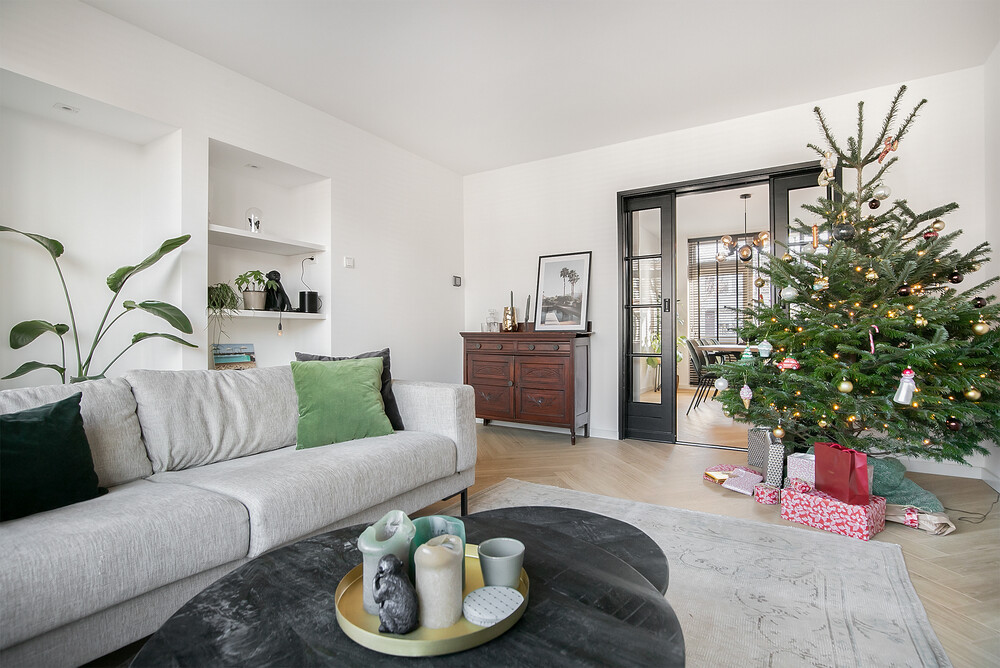Licht, ruimte en sfeerDe woonkamer en-suite is een echte blikvanger. De karakteristieke schuifdeuren zorgen voor een speelse indeling tussen wonen en eten, terwijl de grote ramen zorgen voor veel natuurlijk licht. De woonkamer aan de voorzijde voelt warm en gezellig aan, mede dankzij de schouw en vaste kastruimte. Aan de achterzijde bevindt zich de eetkamer met directe toegang tot het balkon – perfect voor een kop koffie in de ochtendzon of een borrel na werk.