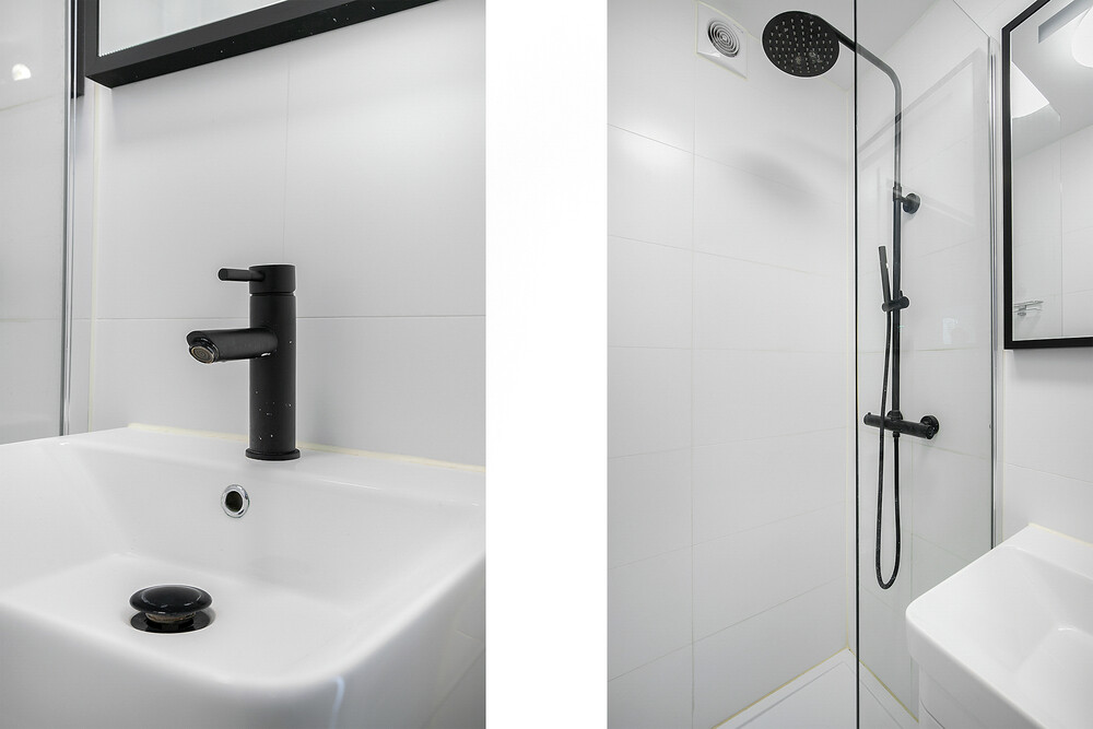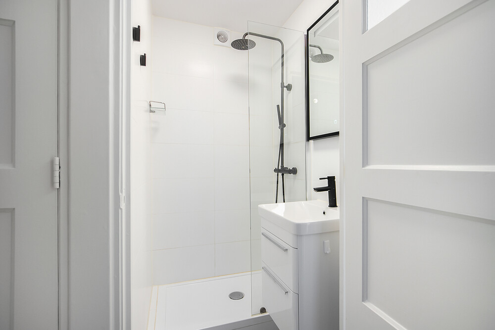 Luxe badkamerDe badkamer is modern en stijlvol afgewerkt. Je vindt hier een ruime inloopdouche met regen- en handdouche, een strak wastafelmeubel en mechanische ventilatie. Ook het toilet is separaat en in dezelfde moderne stijl uitgevoerd.