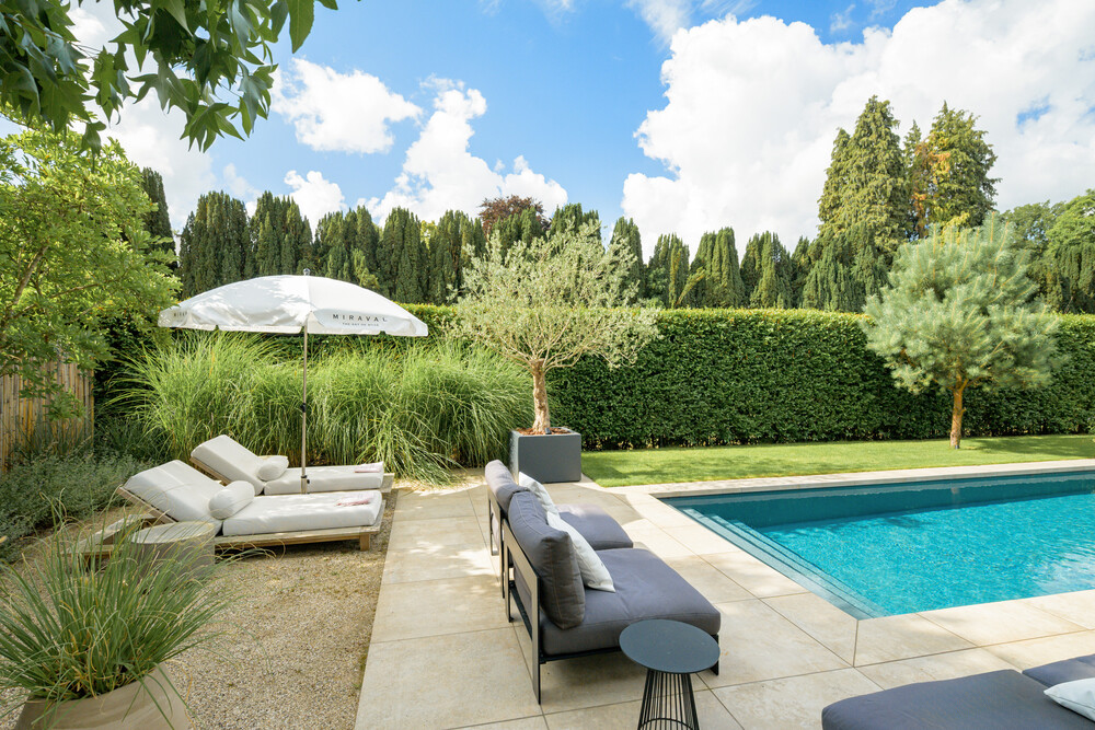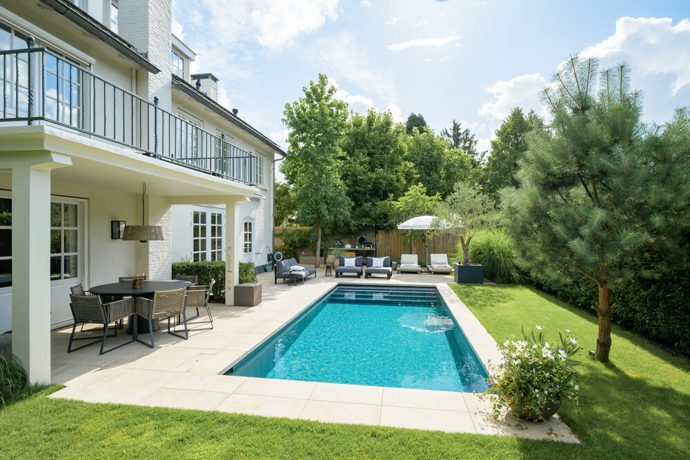 rondom en een volledige privacy biedende achtertuin met een modern zwembad.