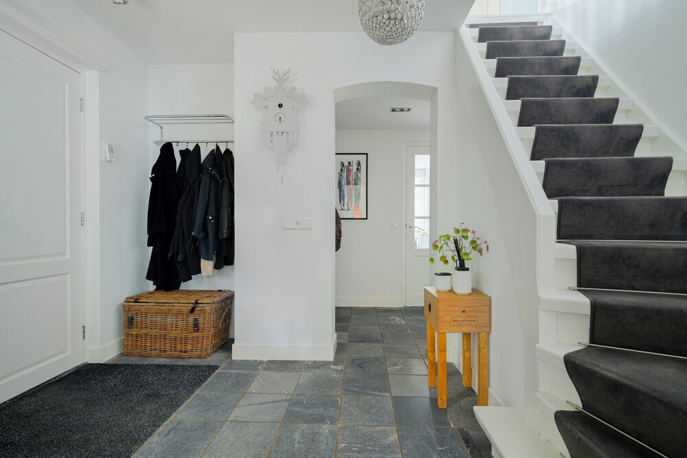 • De eerste en tweede verdieping zijn geheel voorzien van brede houten vloerdelen, op de begane grond zijn de hal, keuken en eetkamer voorzien van natuursteen, de woonkamer van brede houten vloerdelen.