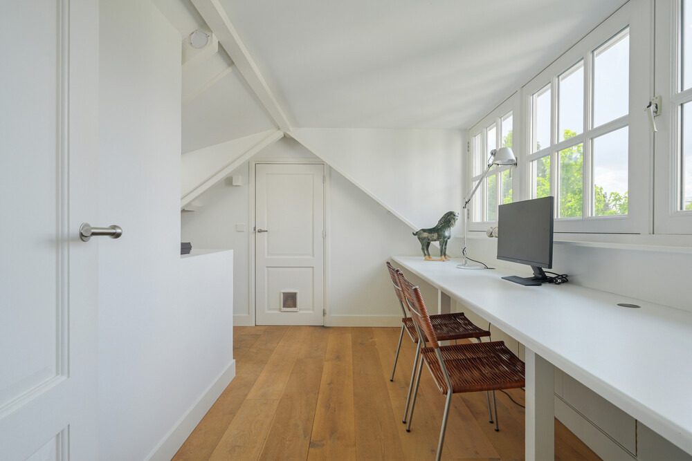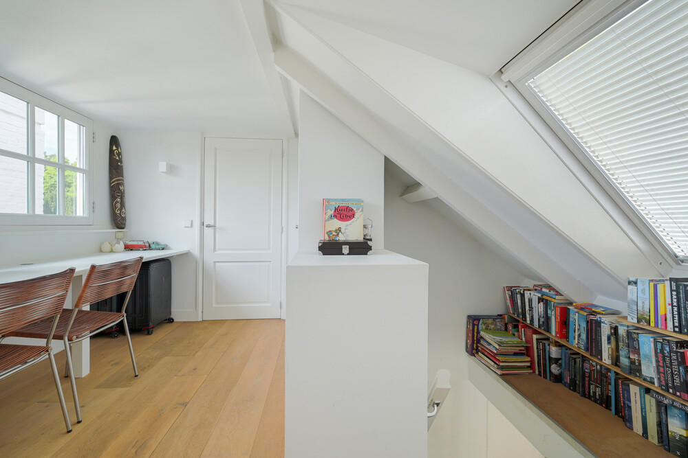 Overloop met dakkapel: hierin is een fijne brede werkplek gecreëerd. En ook hier tref je een inbouwkast. Aan de voorzijde is een Velux dakraam voor extra daglichttoetreding geplaatst.Slaapkamer iv