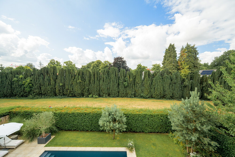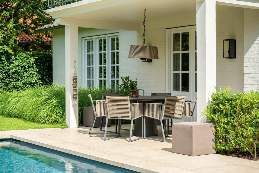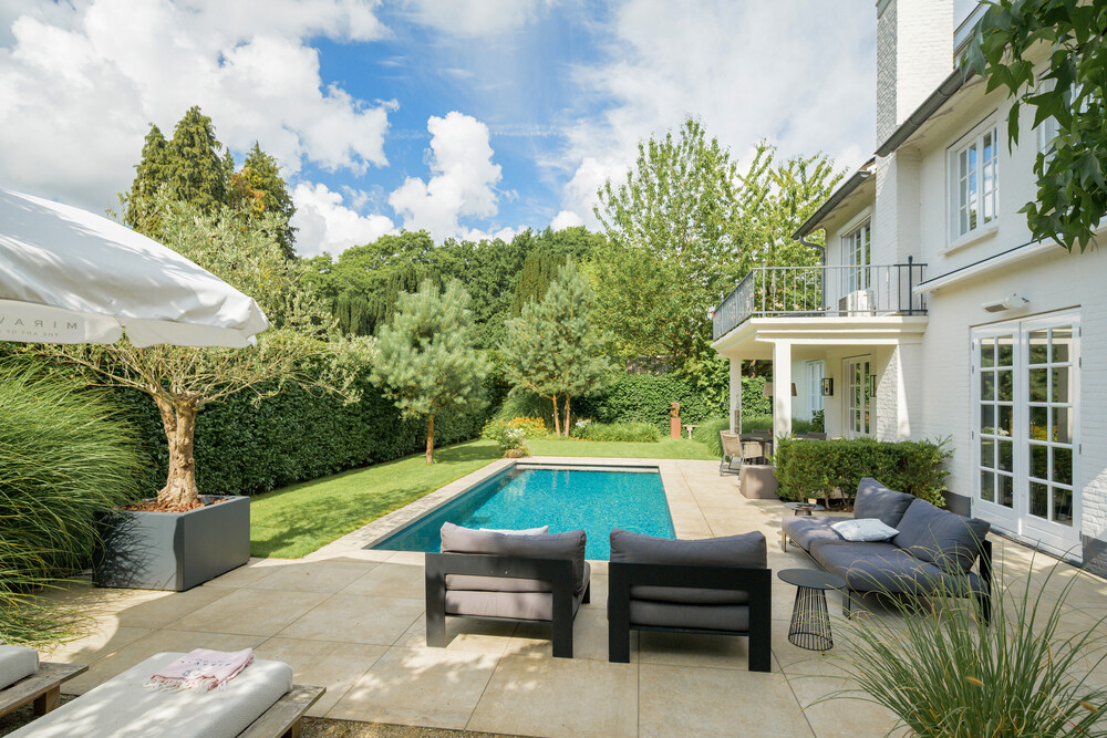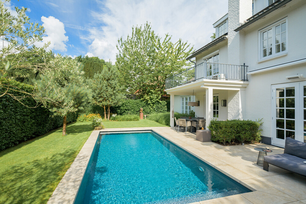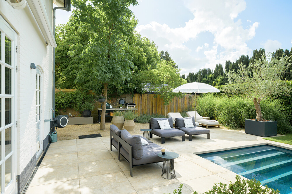 rondom en een volledige privacy biedende achtertuin met een modern zwembad.