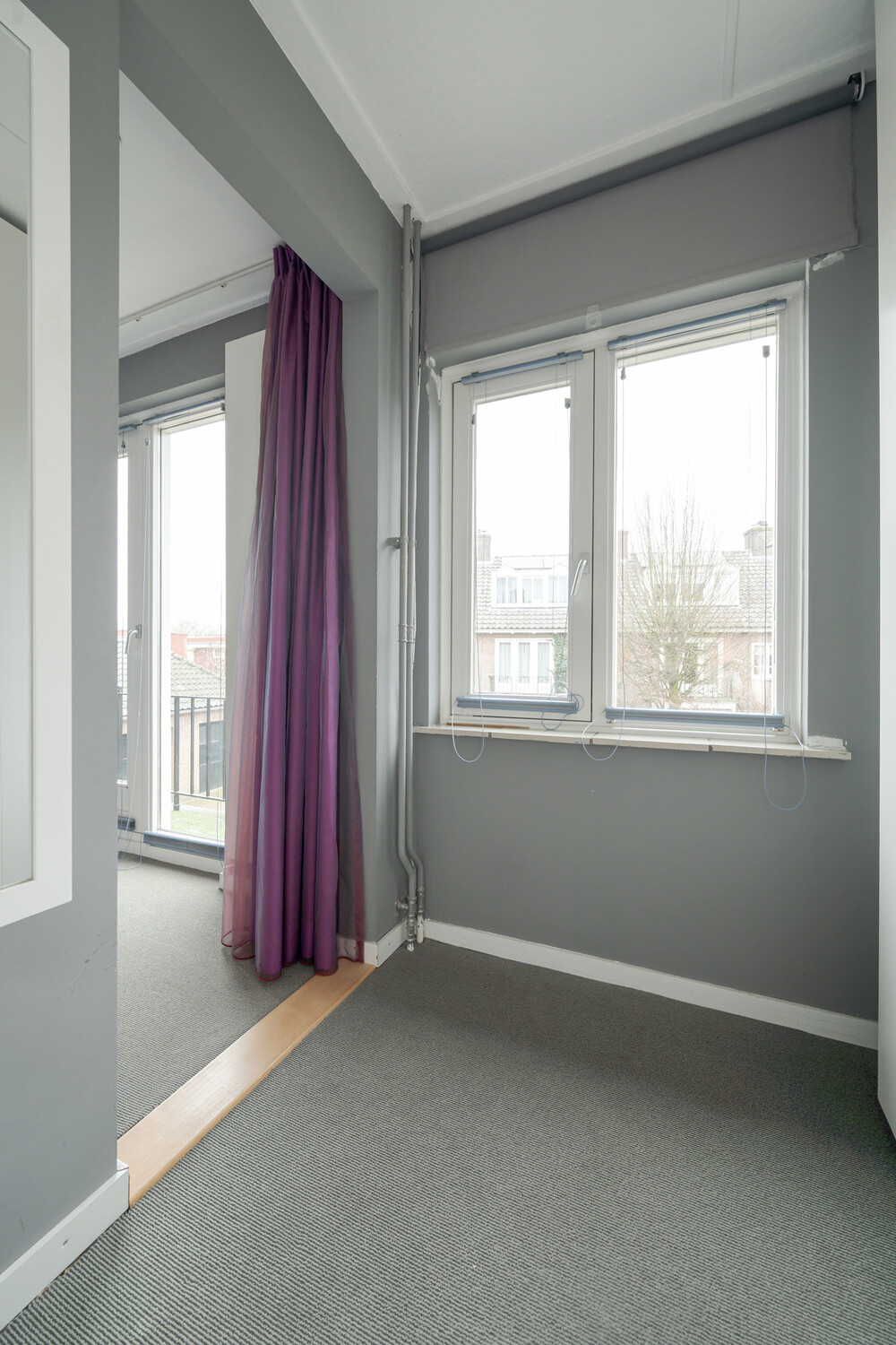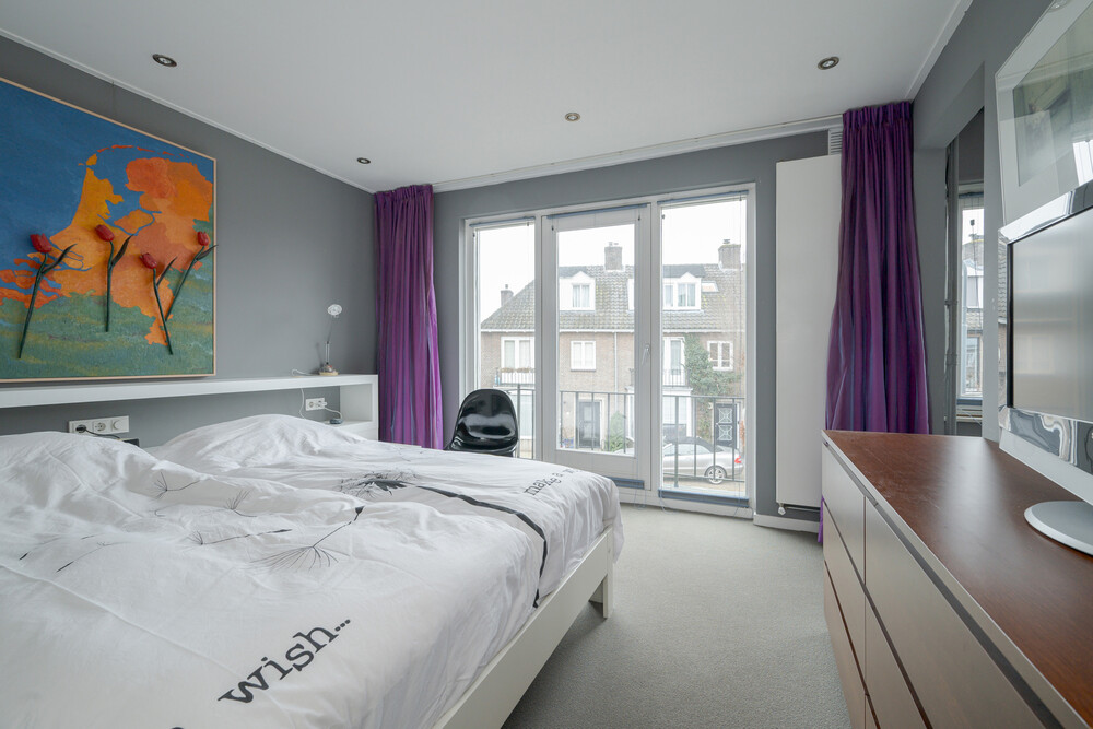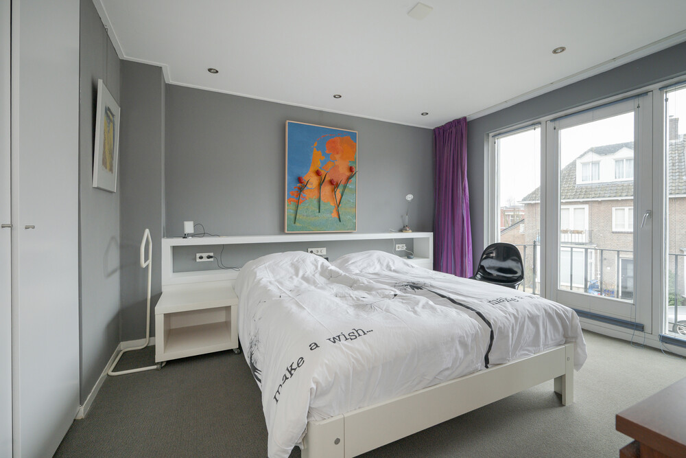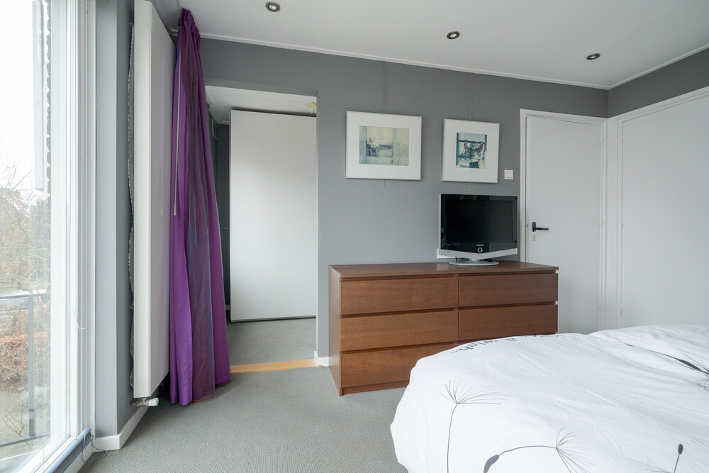 Voorslaapkamer met vaste kasten en een balkon (bereikbaar via een draai-/kiepdeur).Garderobekamer