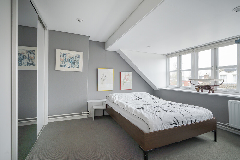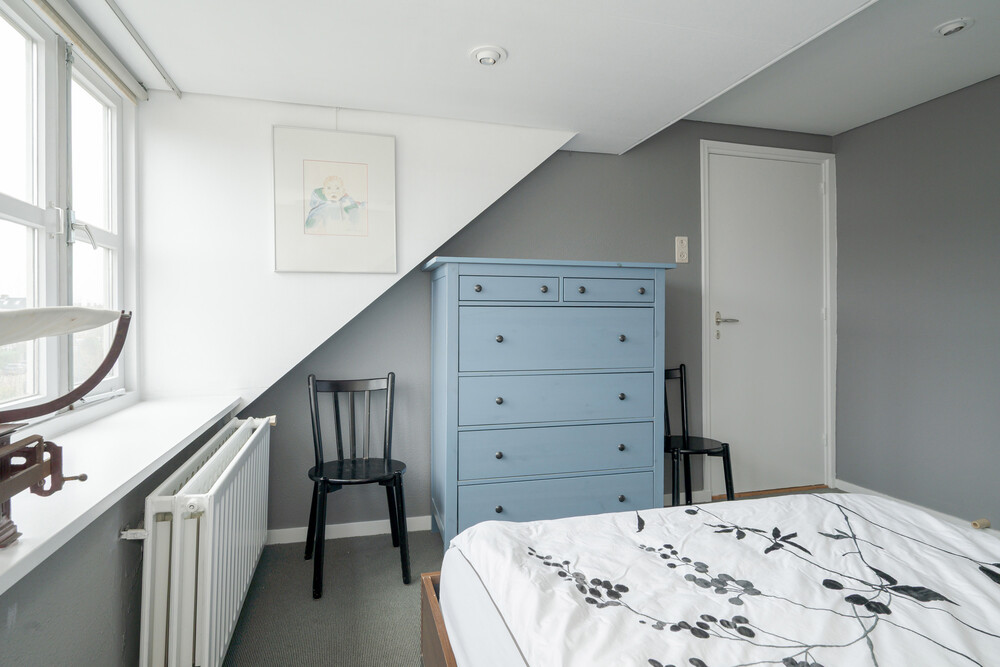 Voorslaapkamer met grote dakkapel en op maat gemaakte kast.Was-/technischeruimte