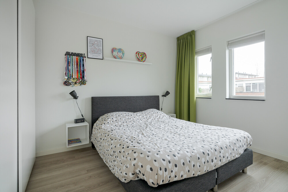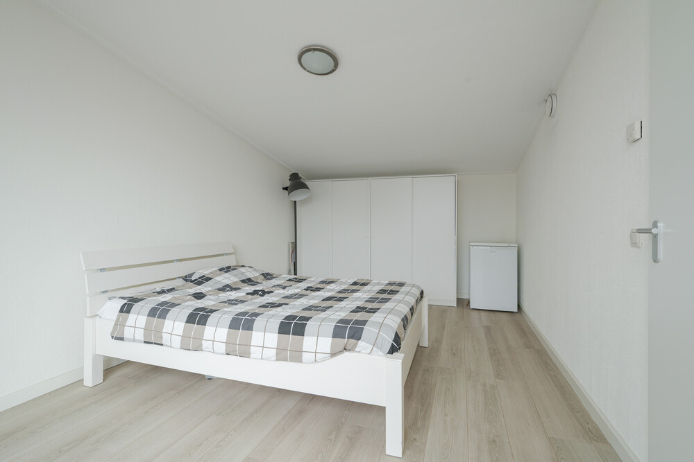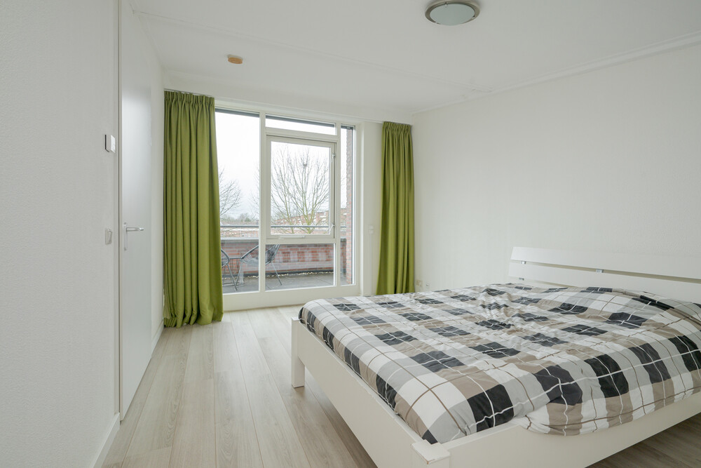 De heerlijk lichte slaapkamer (ca. 3.20 x 5.70 m).Dakterras