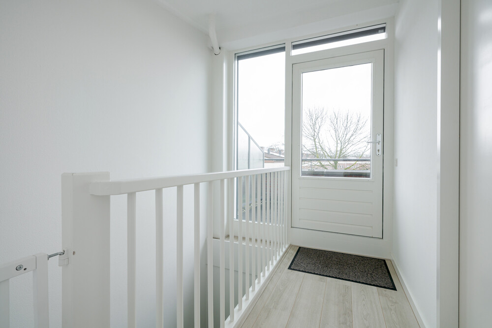 - Op de verdiepingen zijn de kozijnen voorzien van rolluiken.