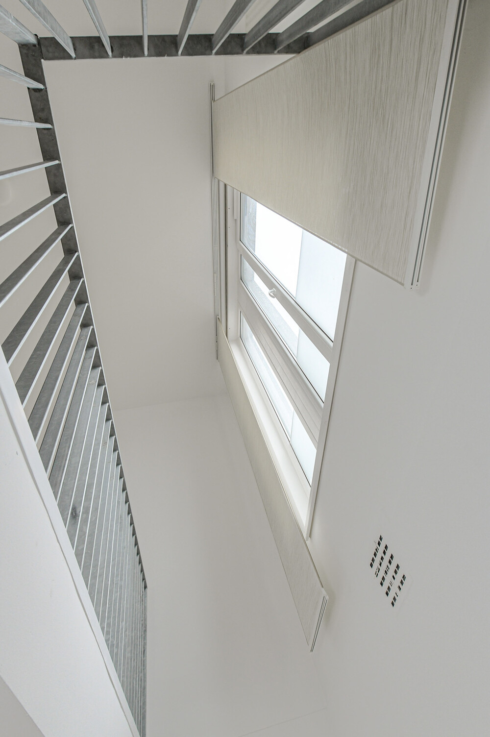 Algemene entree met bellentableau, brievenbussen en intercominstallatie. Portaal met meterkast en trapopgang naar de verdieping.Woonkamer/keuken
