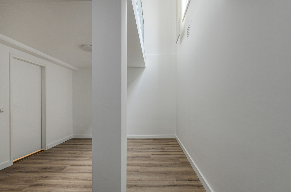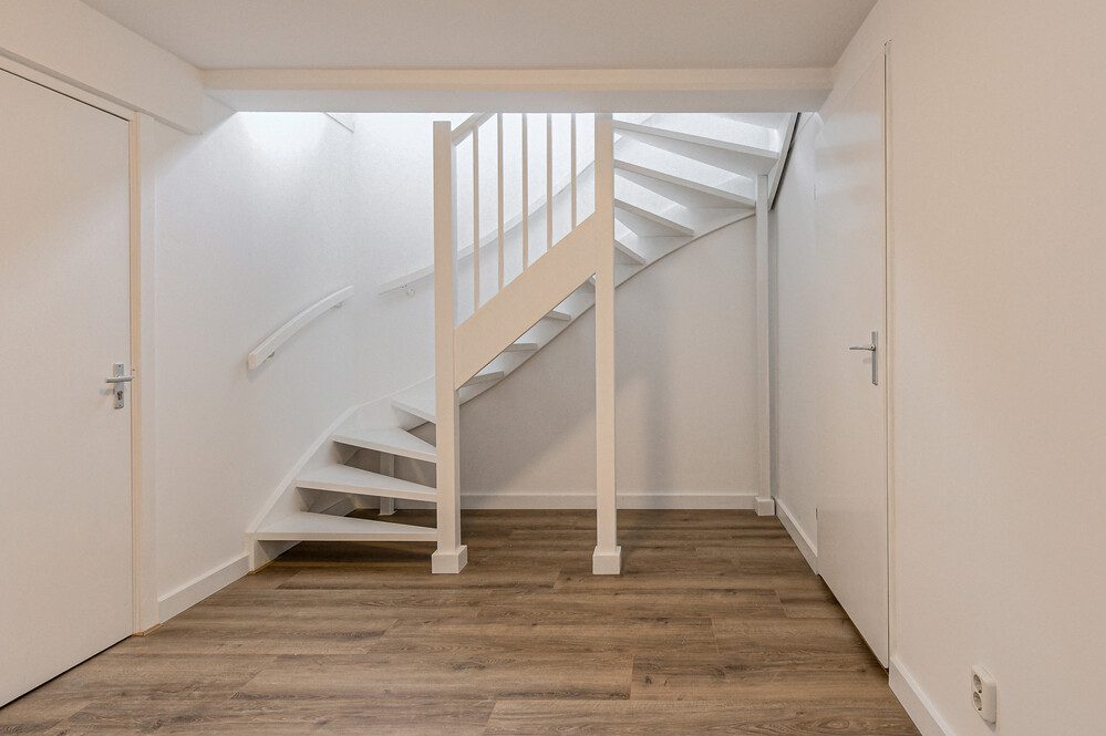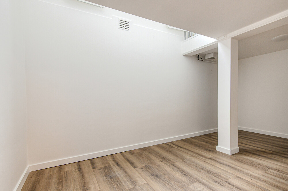 De in het souterrain gelegen slaapkamer (ca. 5,30 x 3,35 m) met laminaat vloer is een verrassend fijne ruimte en biedt veel comfort. Daarnaast is er gedacht aan mechanische ventilatie.Badkamer
