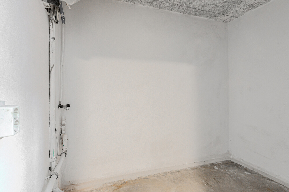 Praktische berging met de aansluiting t.b.v. de wasmachine.