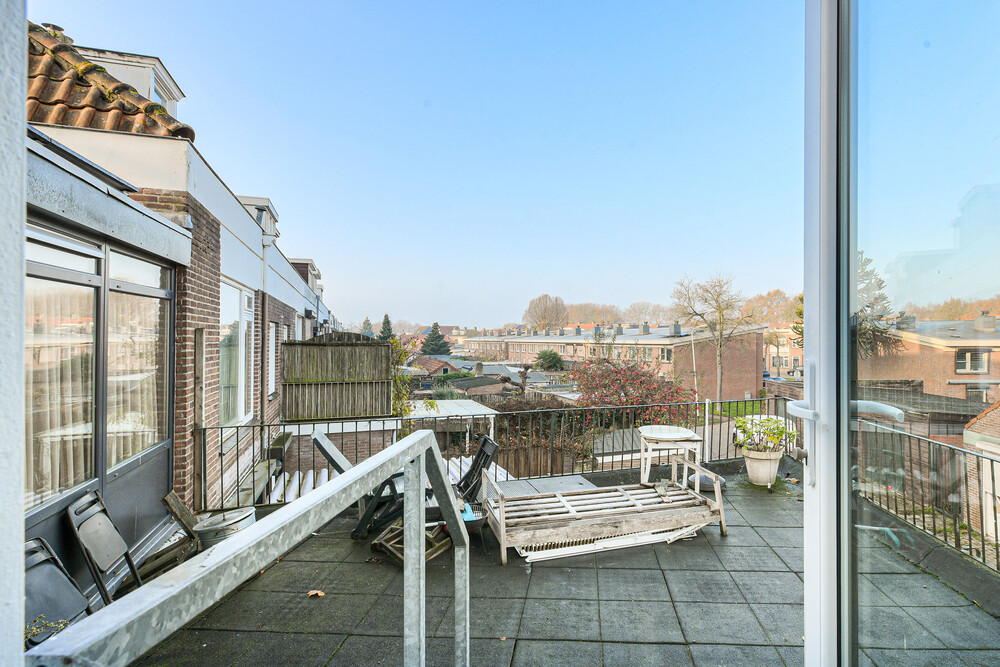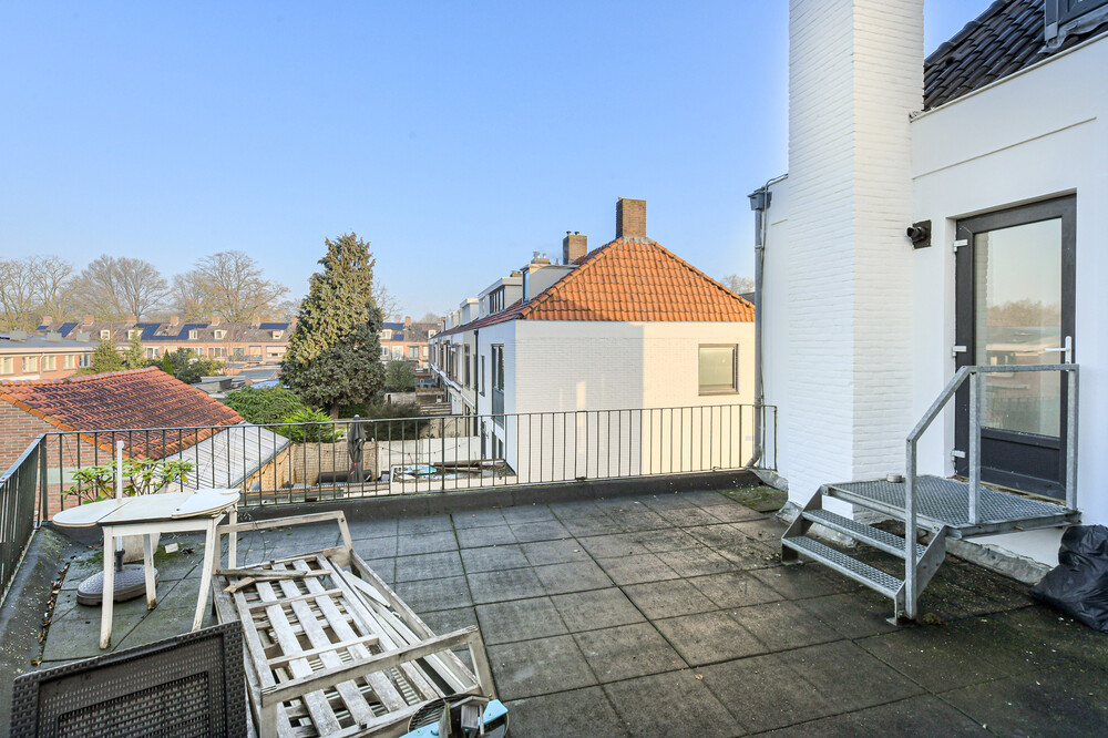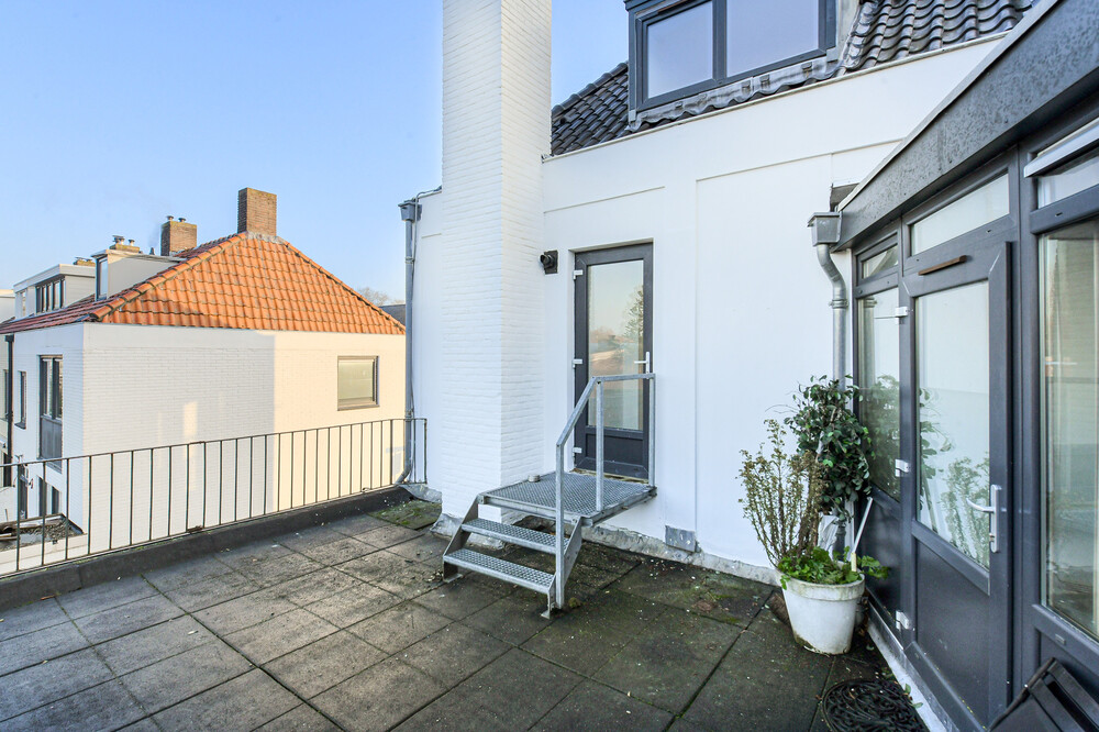 Het gezamenlijk dakterras van ca. 35m2 gesitueerd op het westen (middag- en avondzon) is vanuit de algemene ruimte toegankelijk.