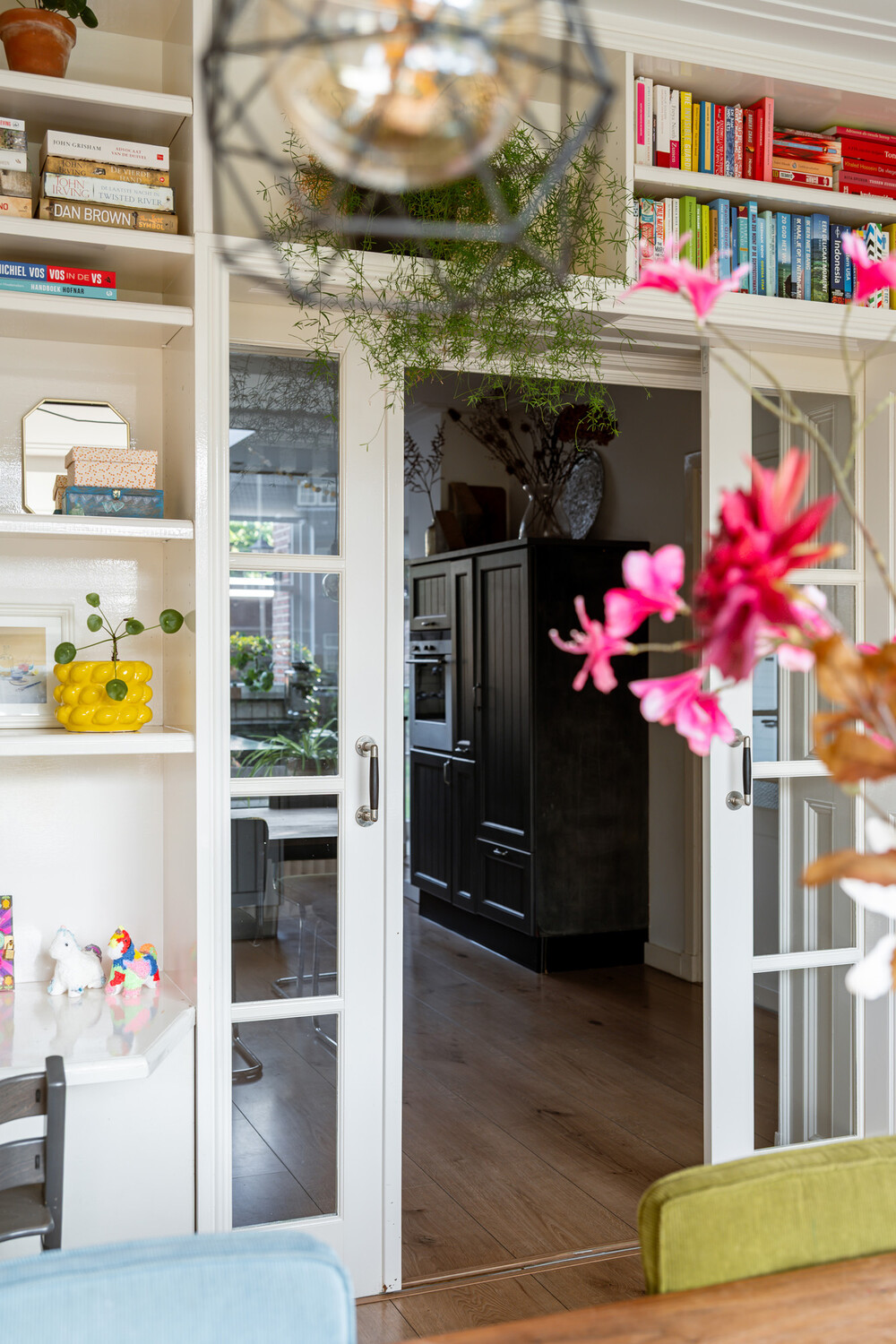 Deze veelzijdige ruimte is gescheiden van de woonkeuken door en-suite deuren met kastombouw. Aan de voorzijde bevindt zich een charmante erker.