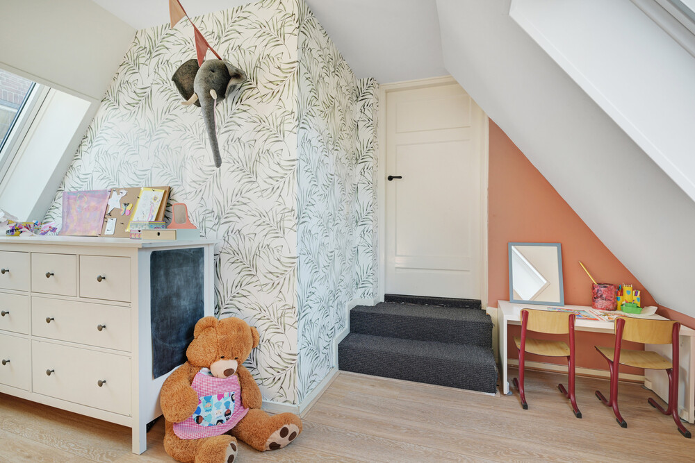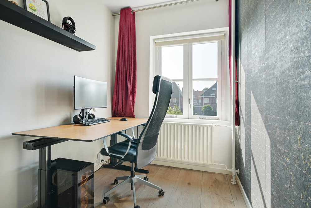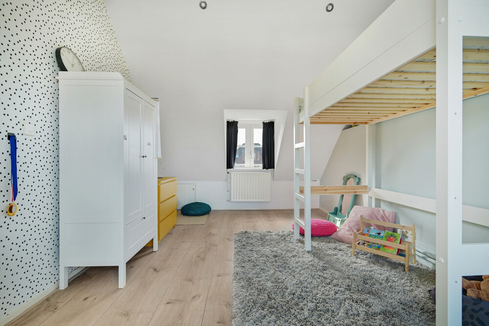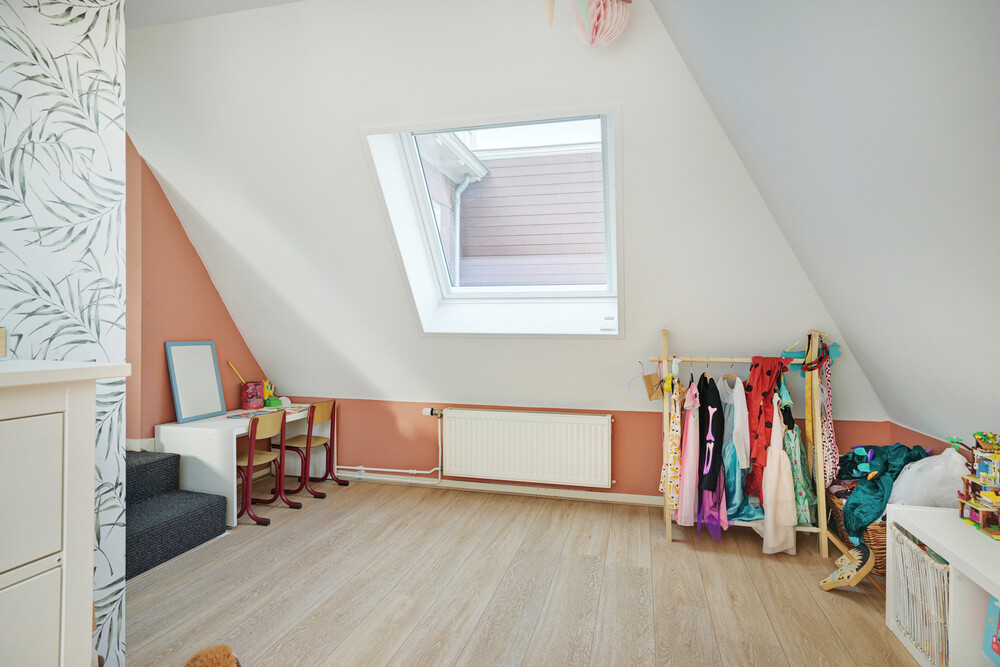 Gelegen aan de achterzijde en voorzien van twee Velux-dakramen, in 2021 vernieuwd, waarvan één zijde is uitgerust met elektrische zonnewering.Tweede verdieping