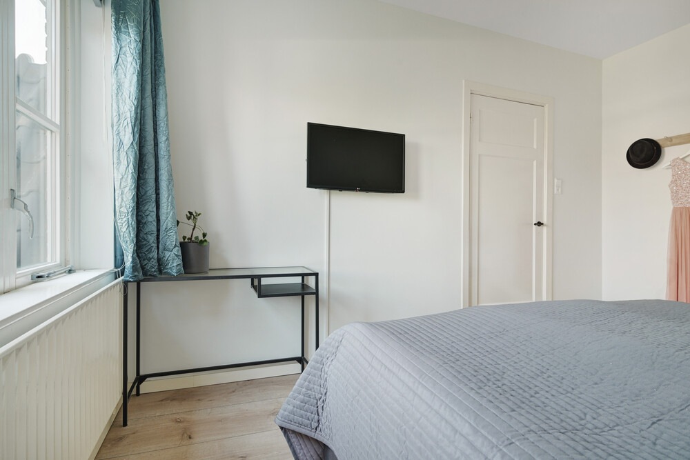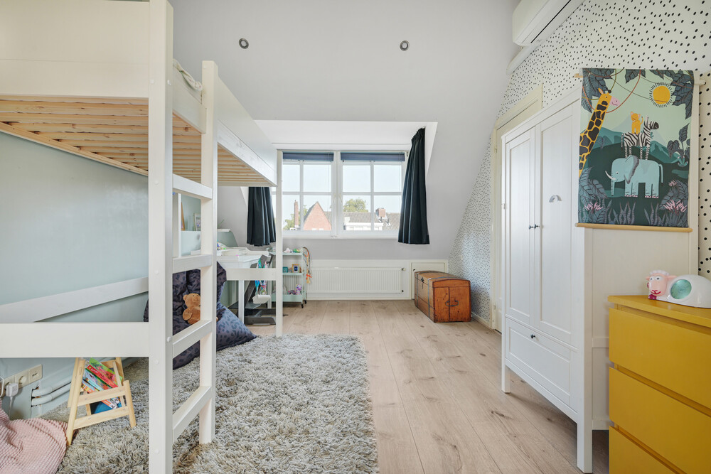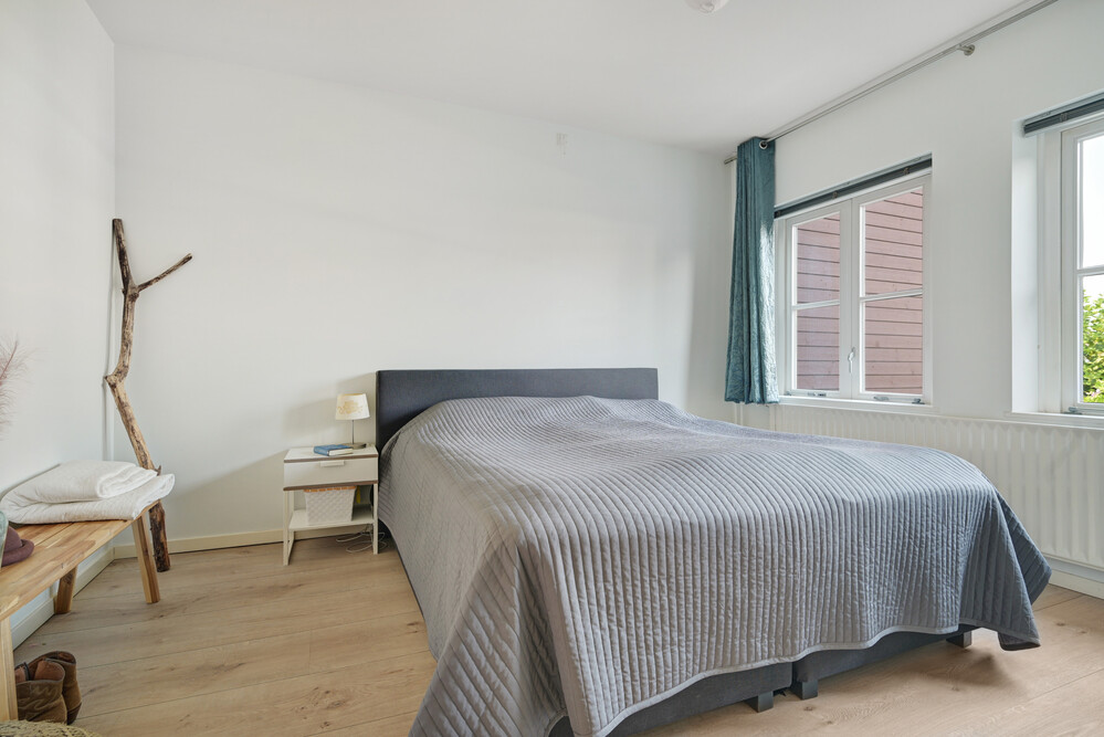 Ruime slaapkamer met een grote dakkapel aan de achterzijde en een bescheiden dakkapel aan de voorzijde, tevens voorzien van airco.