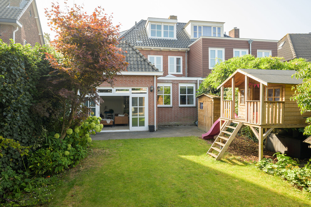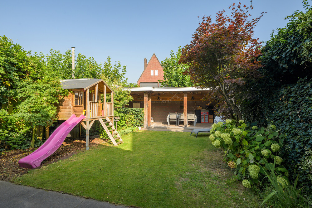 De tuin aan de voorzijde is fraai ingericht en beschikt over een oprit met parkeergelegenheid, een fietsenberging en een laadpaal voor elektrische voertuigenDe achtertuin is gesitueerd op het noordwesten. Dankzij de diepte van de tuin is er gedurende de dag volop zonlicht aanwezig, wat zorgt voor een aangename en lichte buitenruimte.