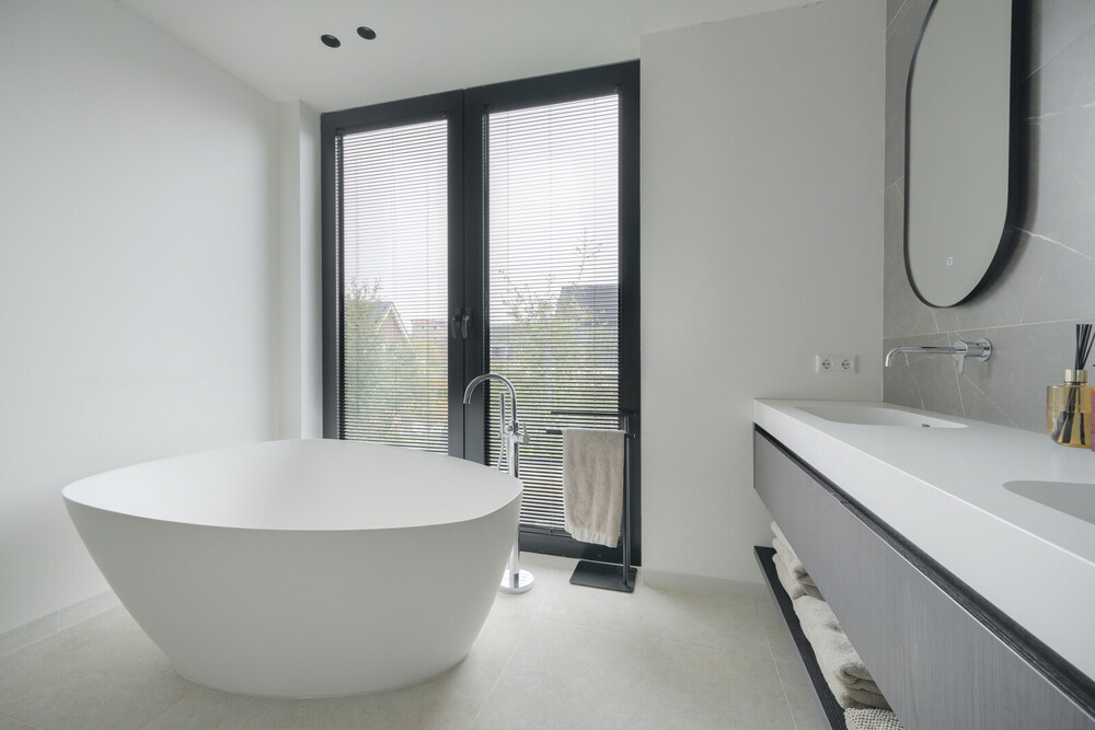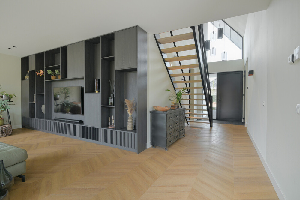 Op de verdieping tref je nog drie slaapkamers en twee badkamers. Naast de woning tref je een carport met parkeerplaats voor twee auto's. De sfeervolle achtertuin biedt optimale privacy.