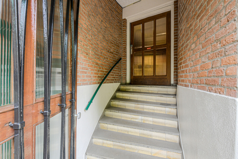 Verzorgde centrale hal met bellentableau, intercominstallatie, brievenbussen en trappenhuis, vanwaar toegang tot zowel het souterrain als de diverse appartementen.Berging