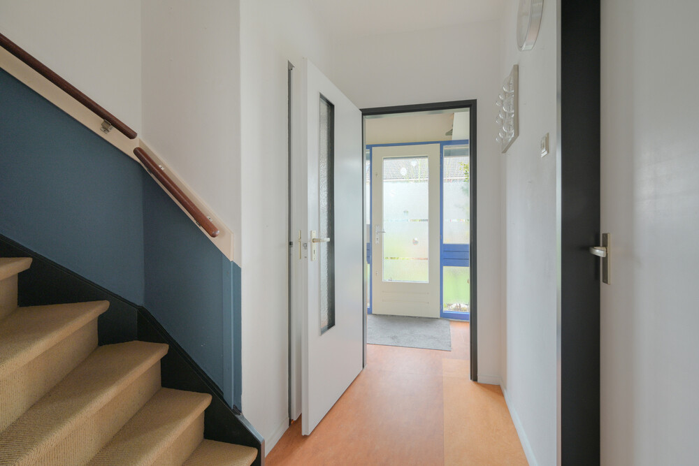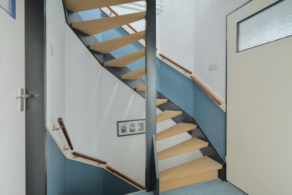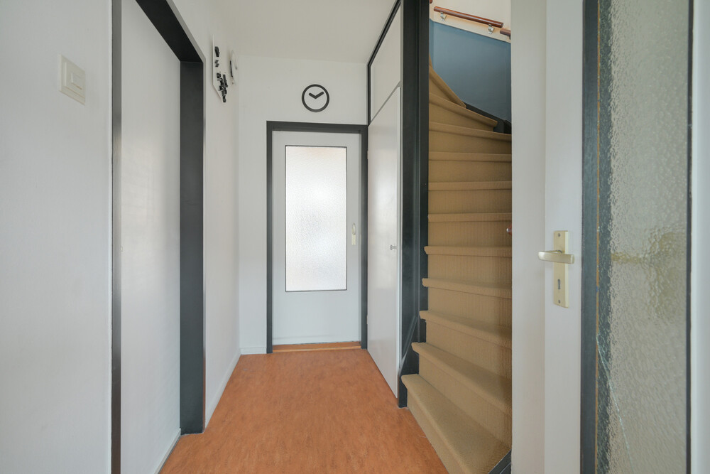 Hal met garderobe, meterkast en toegang tot:Gang met trapopgang naar verdieping I (waaronder een grote trapkast). Vanuit deze gang toegang tot: