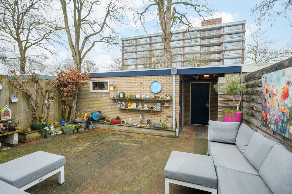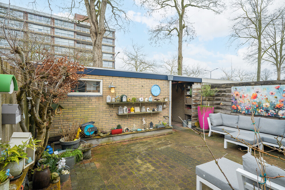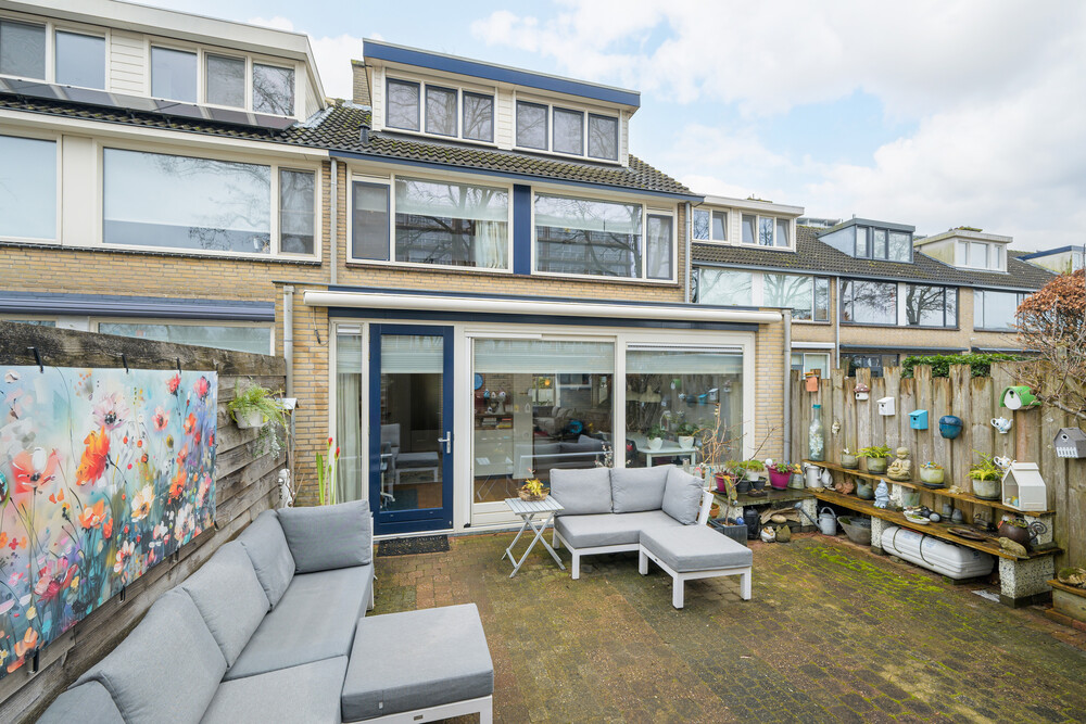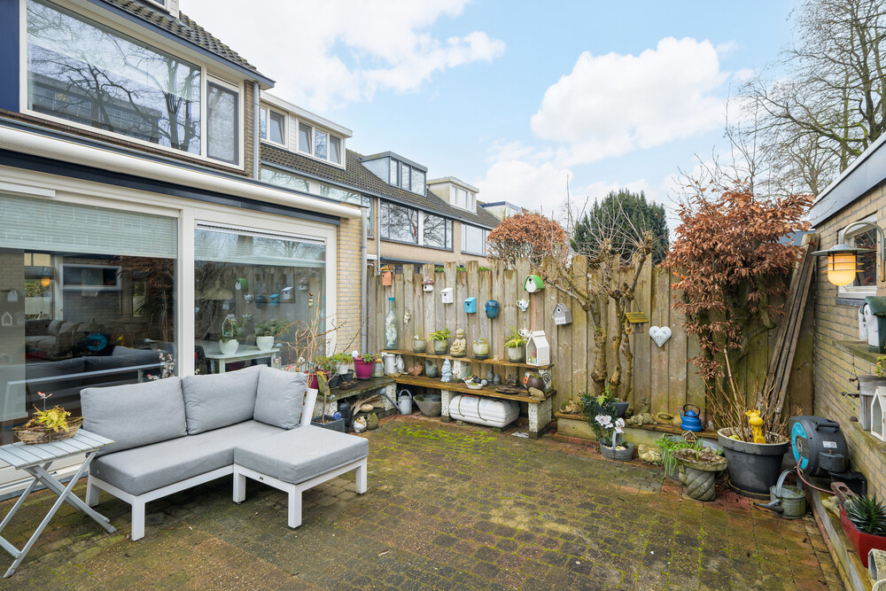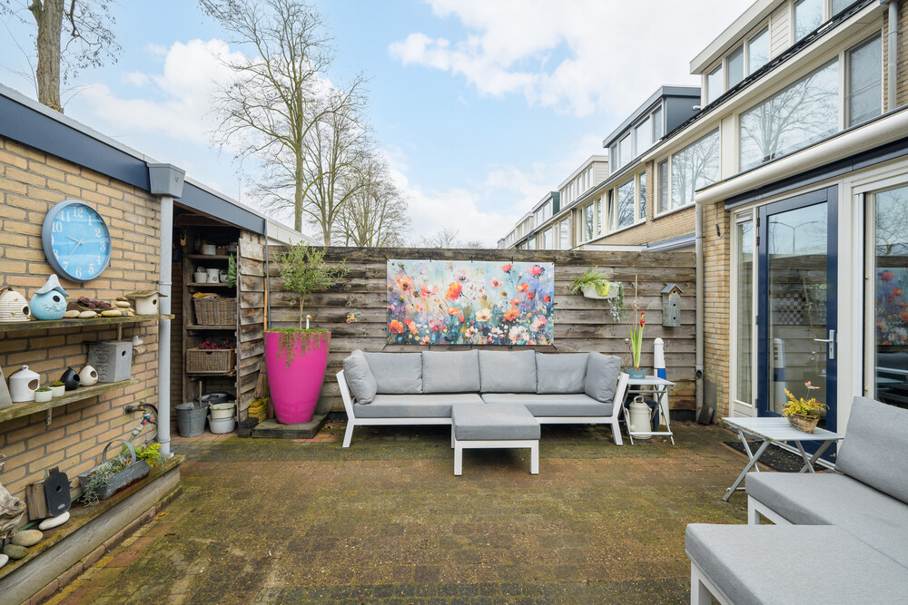De tuin is gelegen op het Westen en is via een achterom bereikbaar.De tuin is bereikbaar vanuit de tuinkamer en is voorzien van bestrating, borders met beplanting. Achter in de tuin tref je een stenen berging.