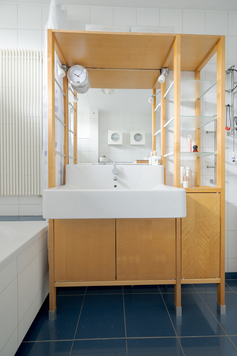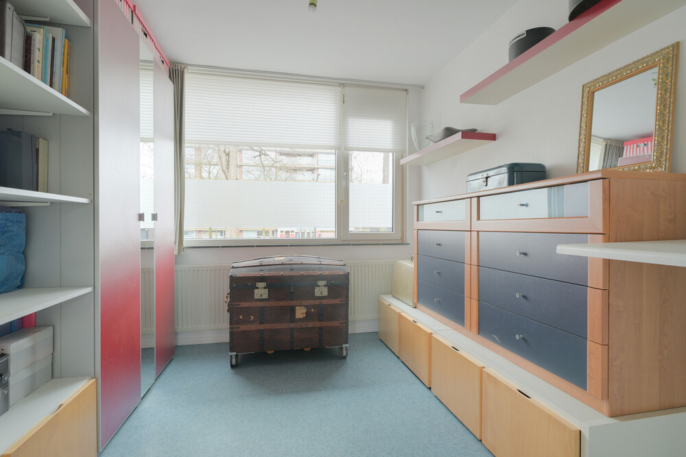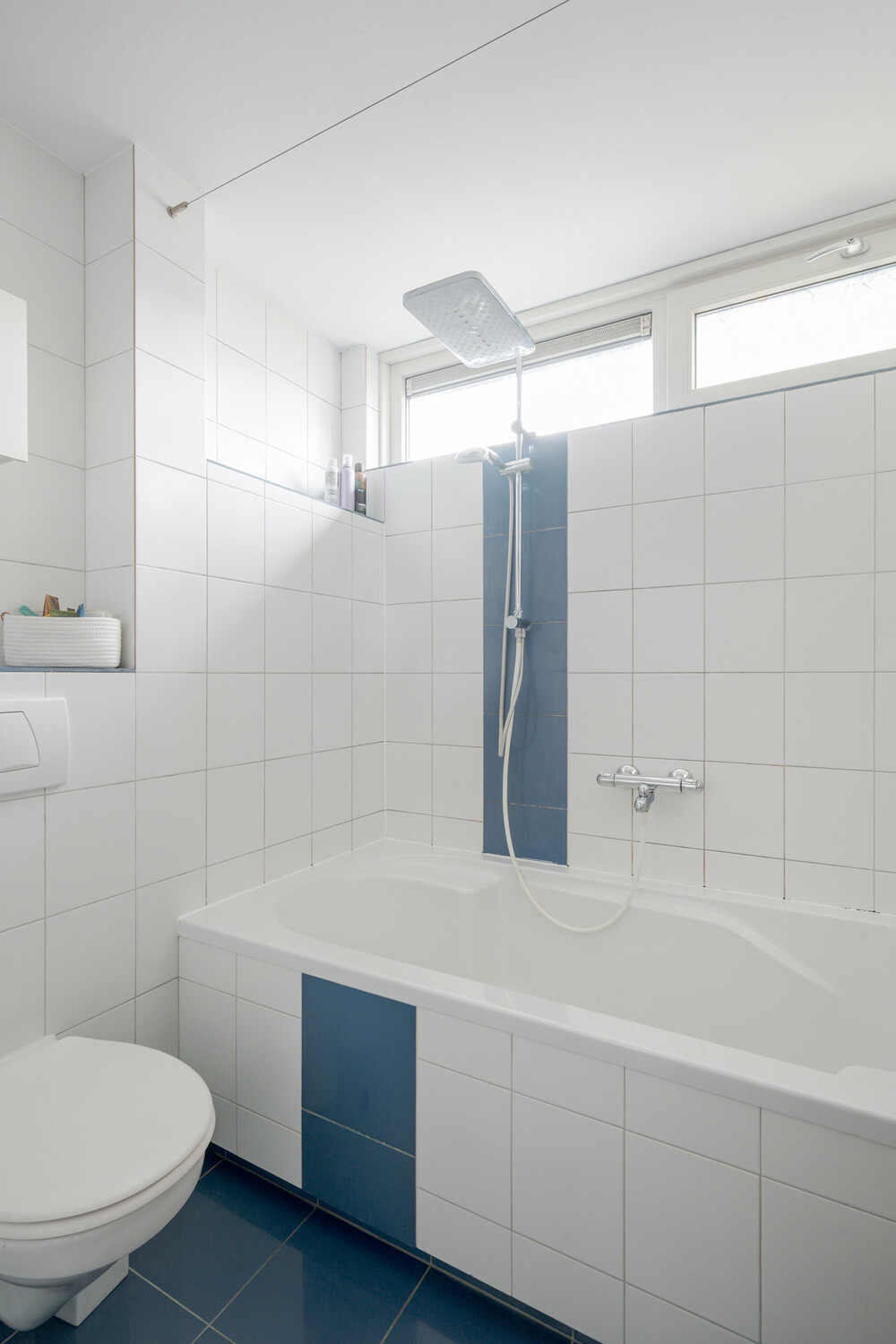 Deze is betegeld en voorzien van een ligbad/douchecombinatie, een wandcloset met inbouwreservoir en een wastafel in een meubel. Ook tref je hier de aansluitingen ten behoeve van de wasapparatuur.Slaapkamer i