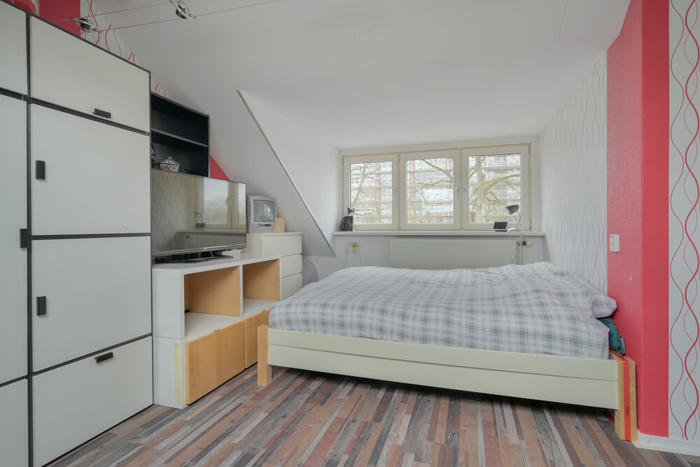Achterslaapkamer met dakkapel.Zolder slaapkamer