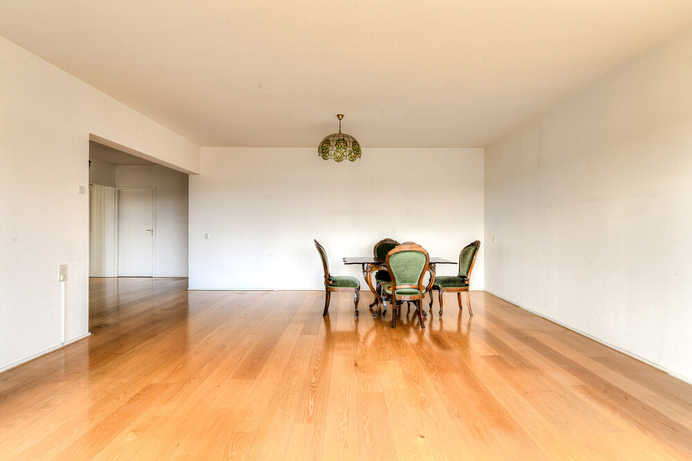 Woonkamer (ca. 5.05 x 6.40/ged. 5.65 m) met lamelparket en deur naar balkon.Balkon i