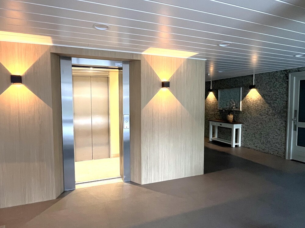 Overdekte entree met brievenbussen, bellentableau en videointercom-systeem in afsluitbare hal met toegang tot trappenhuis, bergingen en liftinstallatie.Berging