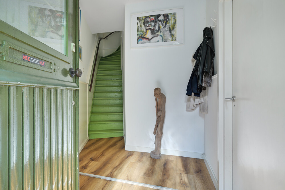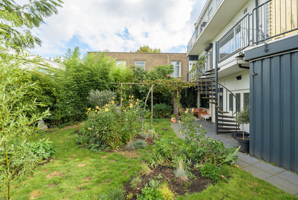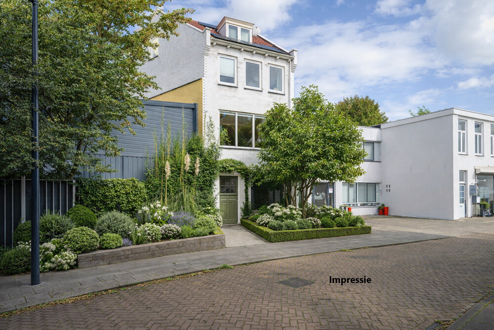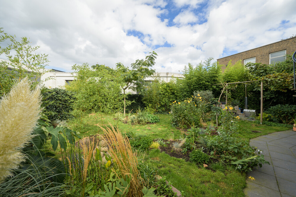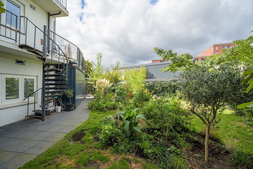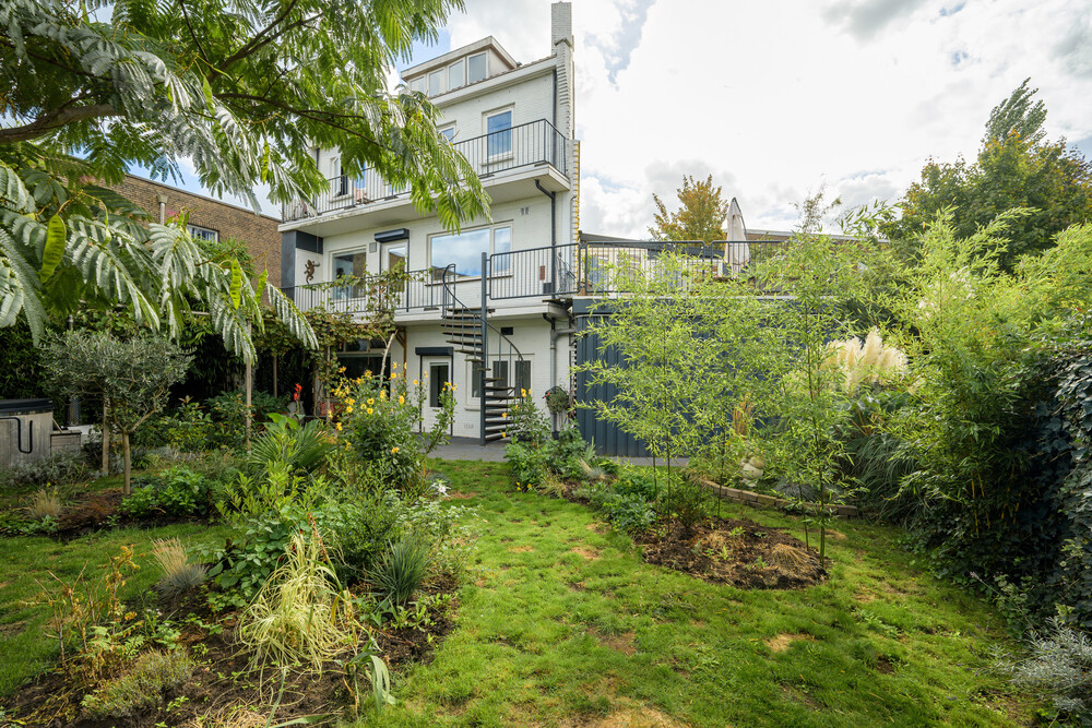 Het perceel is royaal van opzet en de tuin is een ware oase van rust. Omringd door paradijselijk groen ervaart u een unieke beleving midden in de stad, terwijl u geniet van optimale privacy. Een bijzonder kunstzinnig detail is de ‘Blind Wall Gallery’-kunstwerk op de zijkant van het huis, die het karakter van de woning en de omgeving versterkt en een echte blikvanger vormt.