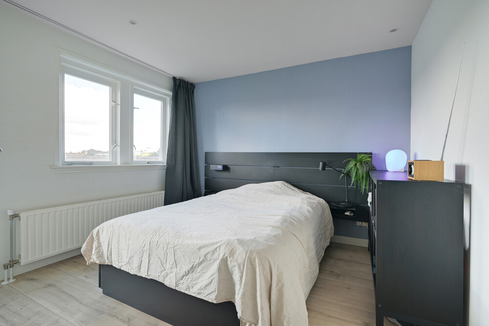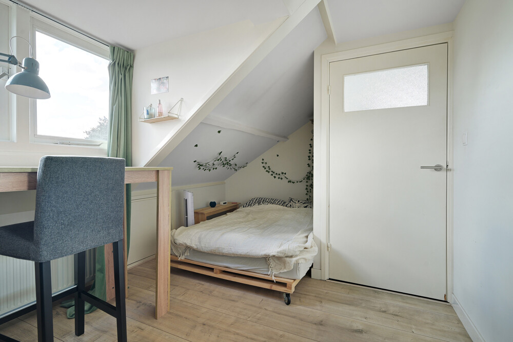 Voorslaapkamer met dakkapel en praktische bergruimte achter de knieschotten.Slaapkamer v