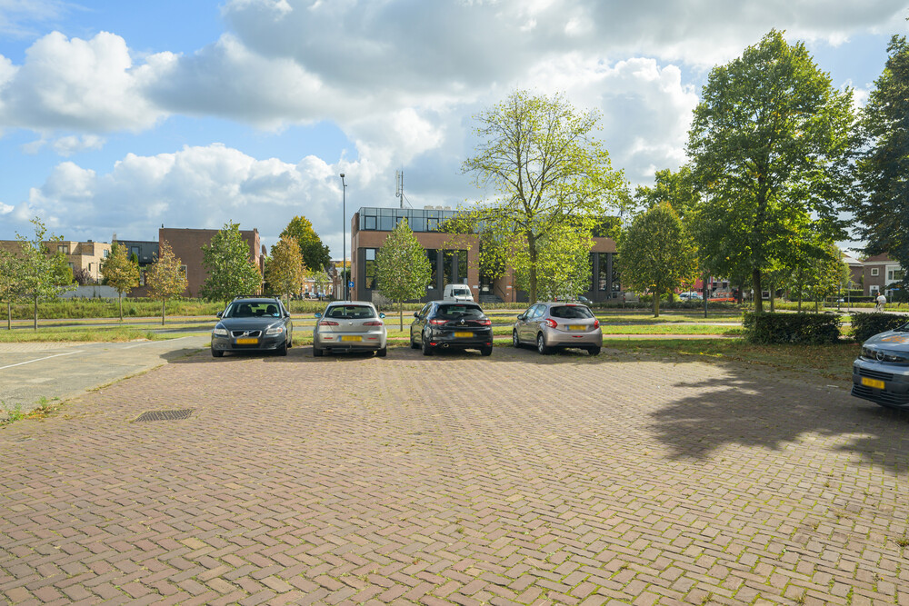 De tuin is een groene oase en voorzien van een verzorgd gazon, kleurrijke borders met gevarieerde beplanting, sfeervolle boompjes en weelderige heesters. Tegen de woning is een praktische overkapping geplaatst, ideaal voor beschutte zitmomenten, en een ruim betonnen terras biedt volop plek voor loungen, dineren of ontspanning in de zon