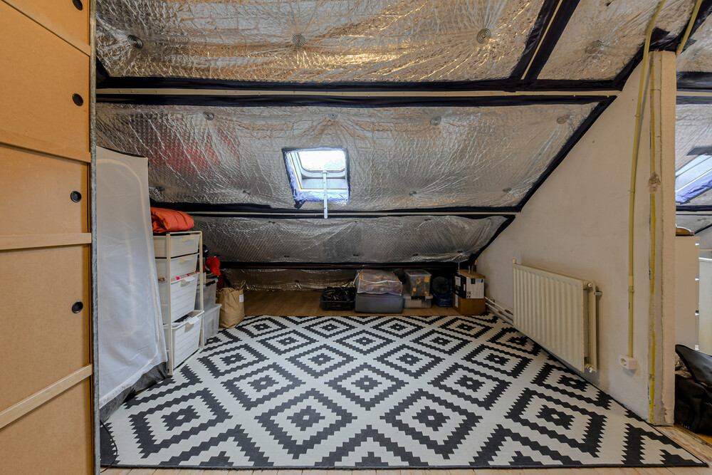 De zolderkamer (ca. 3.25 x 3.45 m op 1.50m-lijn) is voorzien van een dakraam en dient verder te worden afgewerkt waarbij de mogelijkheid bestaat voor het creëren van een extra slaapkamer of hobbyruimte. De zolder is al wel voorzien van dakisolatie.