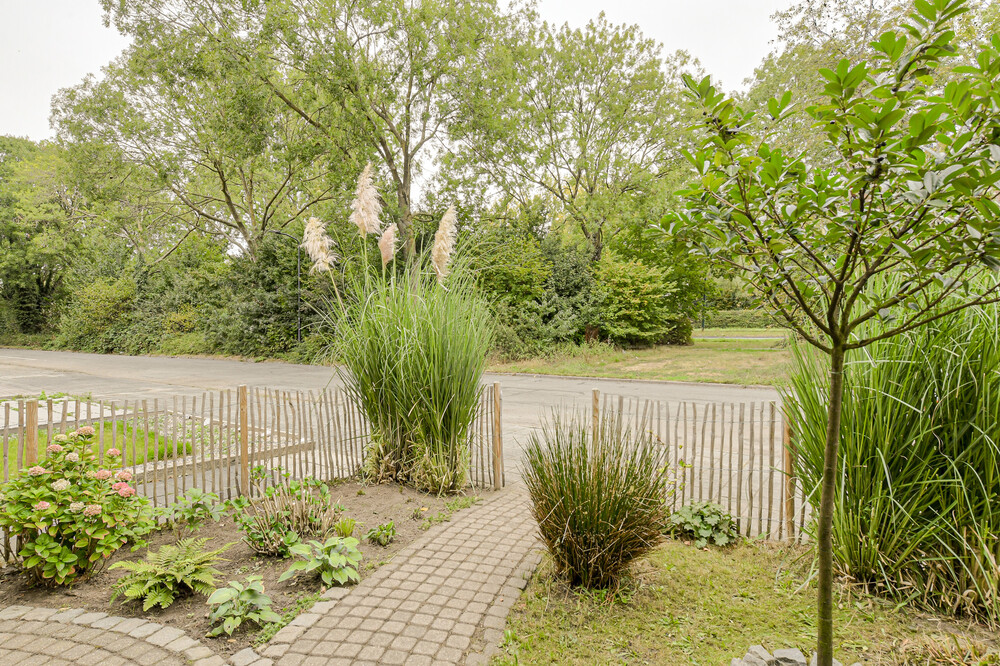 De woning beschikt over een verzorgde en ruime voortuin, aangelegd met sierbestrating, borders en een gazon.Achtertuin