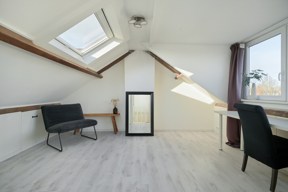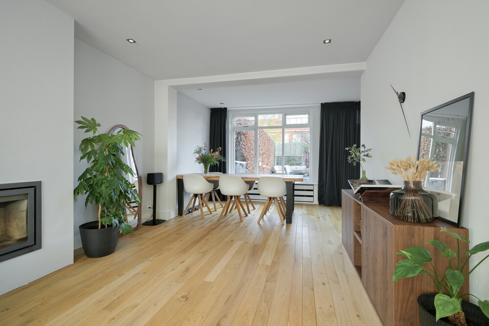 De woning verrast met een royale en lichte woonkamer, waar de open haard zorgt voor een warme, uitnodigende ambiance. Dankzij de uitbouw over de volle breedte is er een fijne leefruimte ontstaan die zich uitstekend leent voor zowel ontspannen avonden als gezellige momenten met familie en vrienden. De open keuken sluit hier naadloos op aan en is uitgevoerd in een moderne, eigentijdse inrichting, waardoor koken en samenzijn moeiteloos hand in hand gaan. Op de verdiepingen beschikt de woning over drie comfortabele slaapkamers, een praktische wasruimte en een moderne badkamer met eigentijds sanitair. Deze indeling maakt de woning uitermate geschikt voor een gezin, maar ook voor wie graag extra ruimte heeft voor werken of hobby's aan huis.