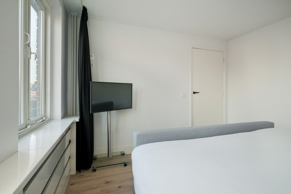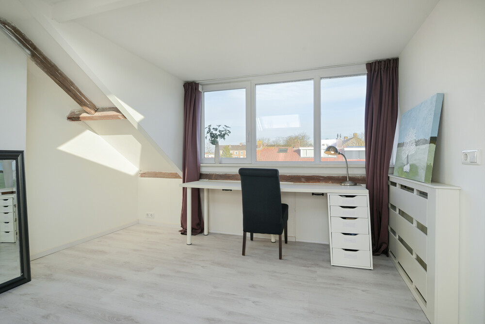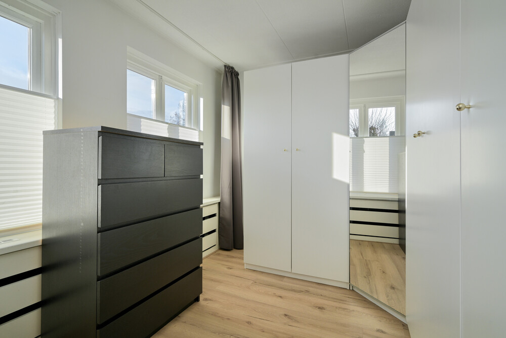 Voorzolder (ca. 2.00 x 3.45/2.55 m op 1.50m-lijn) met laminaatvloer, dakkapel, knieschotbergingen aan beide zijden en CV-kast met Intergas HR combi-ketel (bj 2023) en unit t.b.v. de mechanische ventilatie. Vanuit de voorzolder via houten schuifloftdeur toegang tot de slaapkamer.Slaapkamer iii