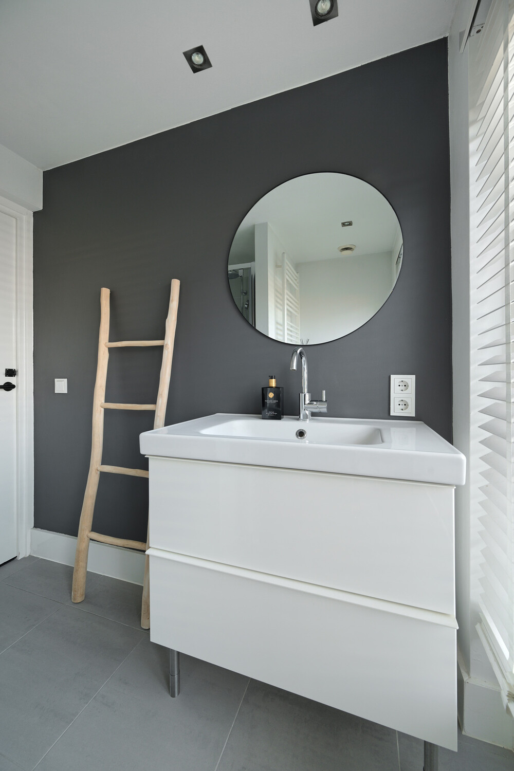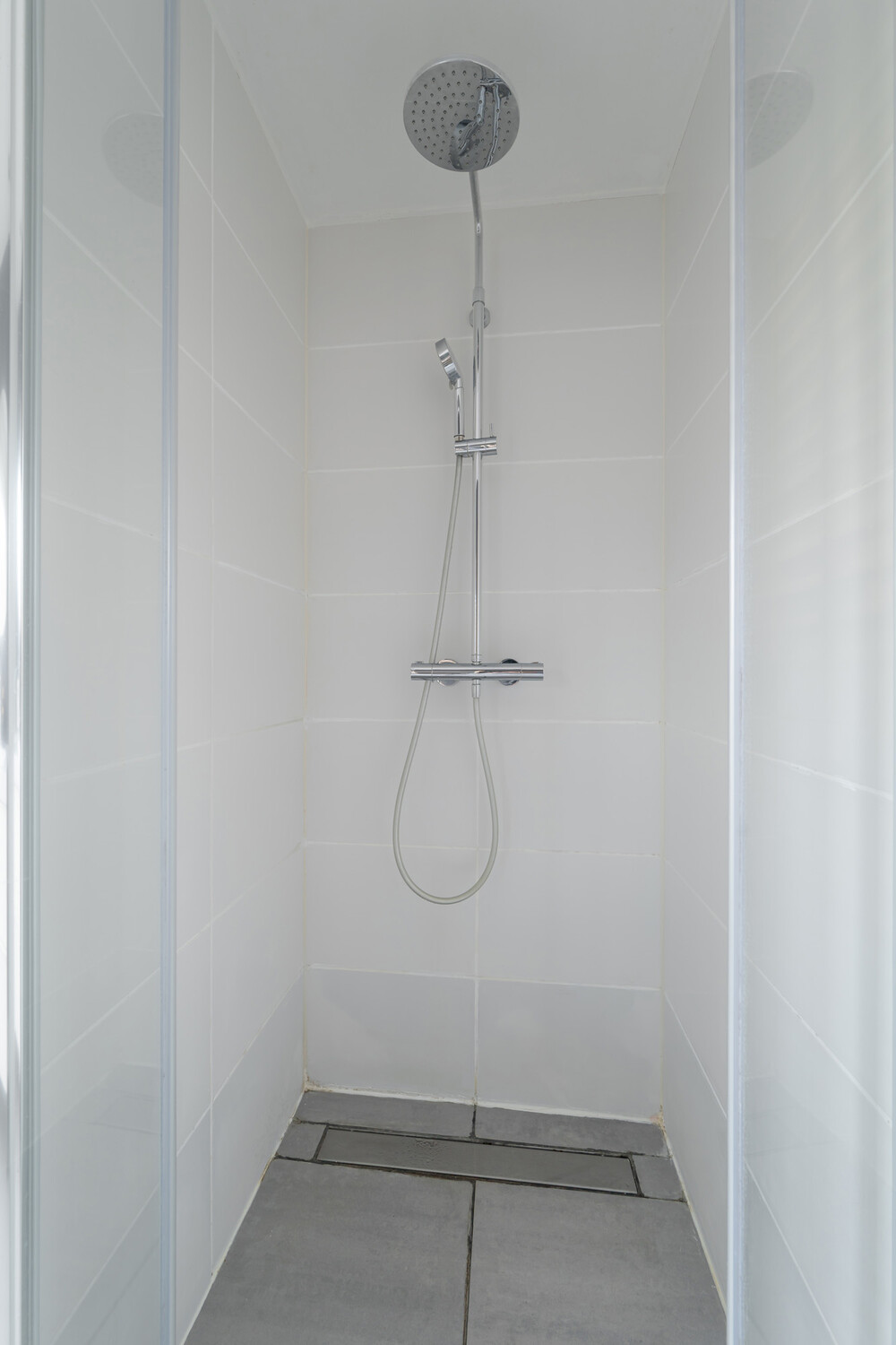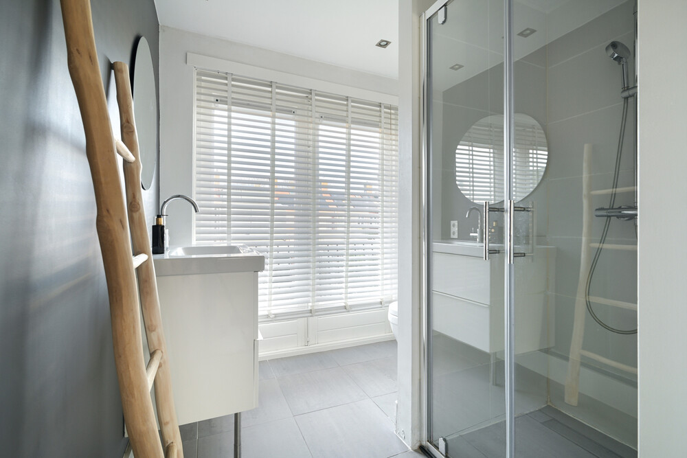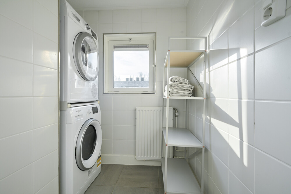 Nette badkamer (ca. 2.00 x 2.10 m) voorzien van inloopdouche, wastafelmeubel, handdoekradiator en wandcloset met inbouwreservoir. Vanuit de badkamer via dubbele deuren toegang tot het balkon.Wasruimte