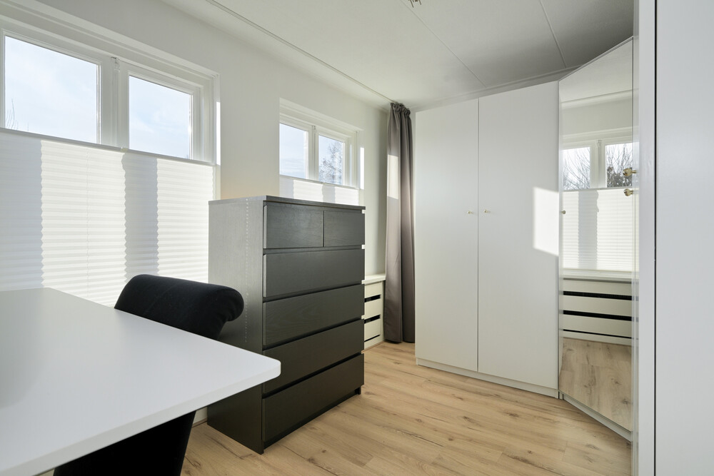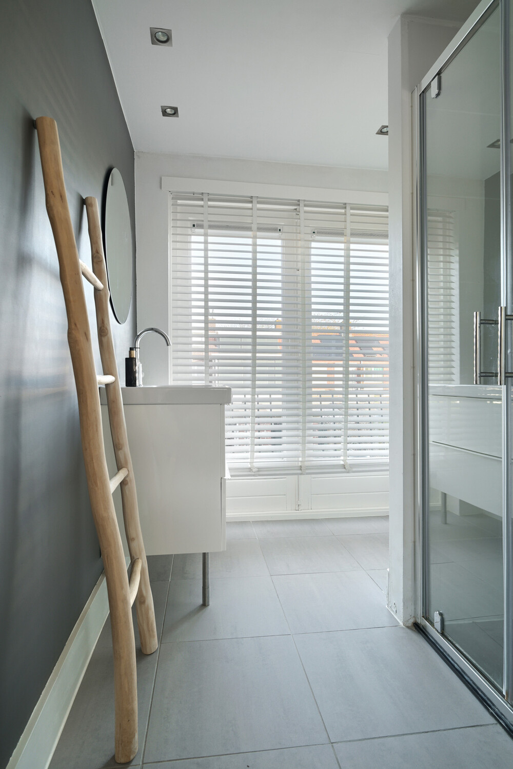 Slaapkamer (ca. 3.25 x 3.50 m), gelegen aan de achterzijde met laminaatvloer.Badkamer